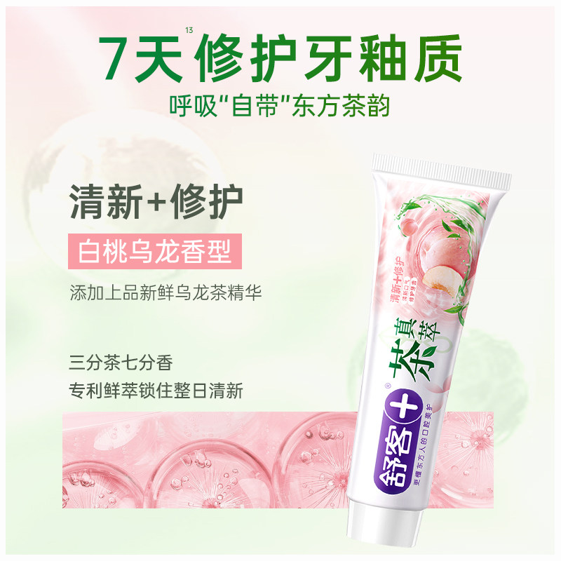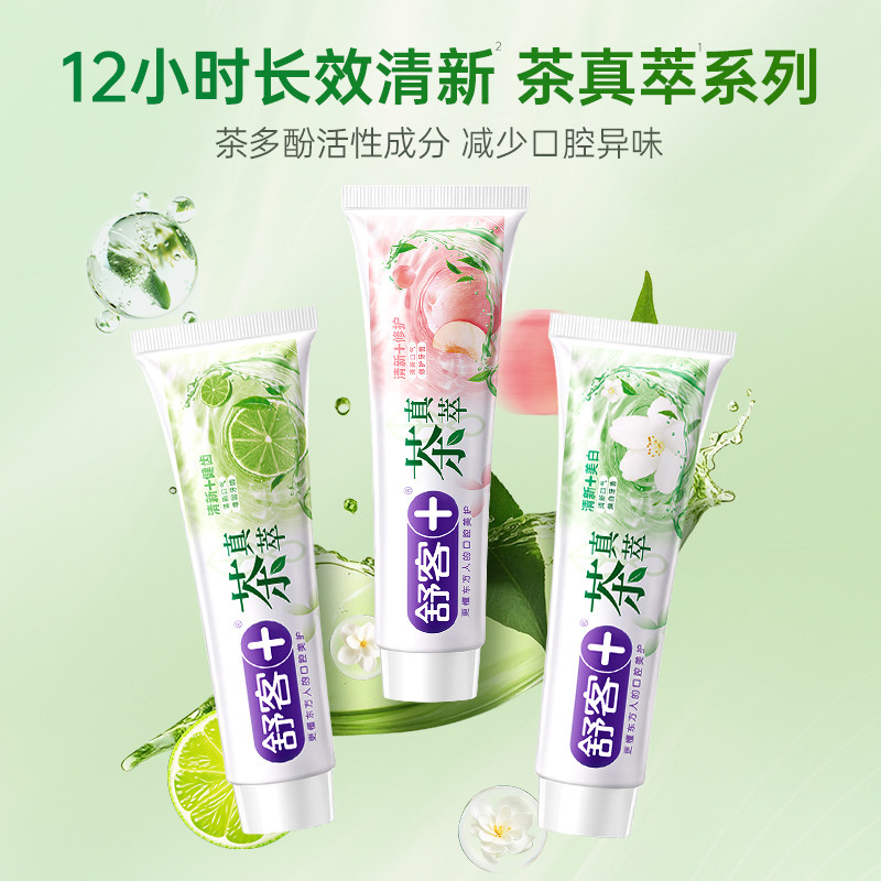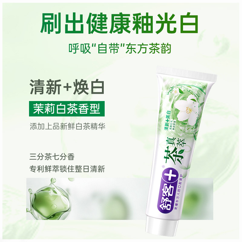 舒客茶真萃牙膏亮白去渍茉莉白茶白桃清新口气家庭装大容量牙齿