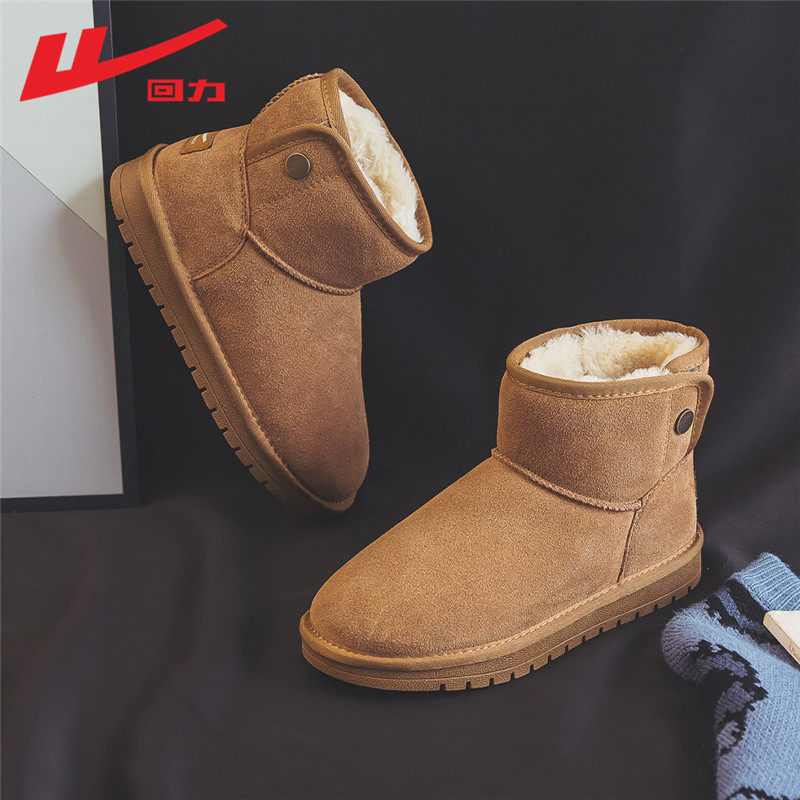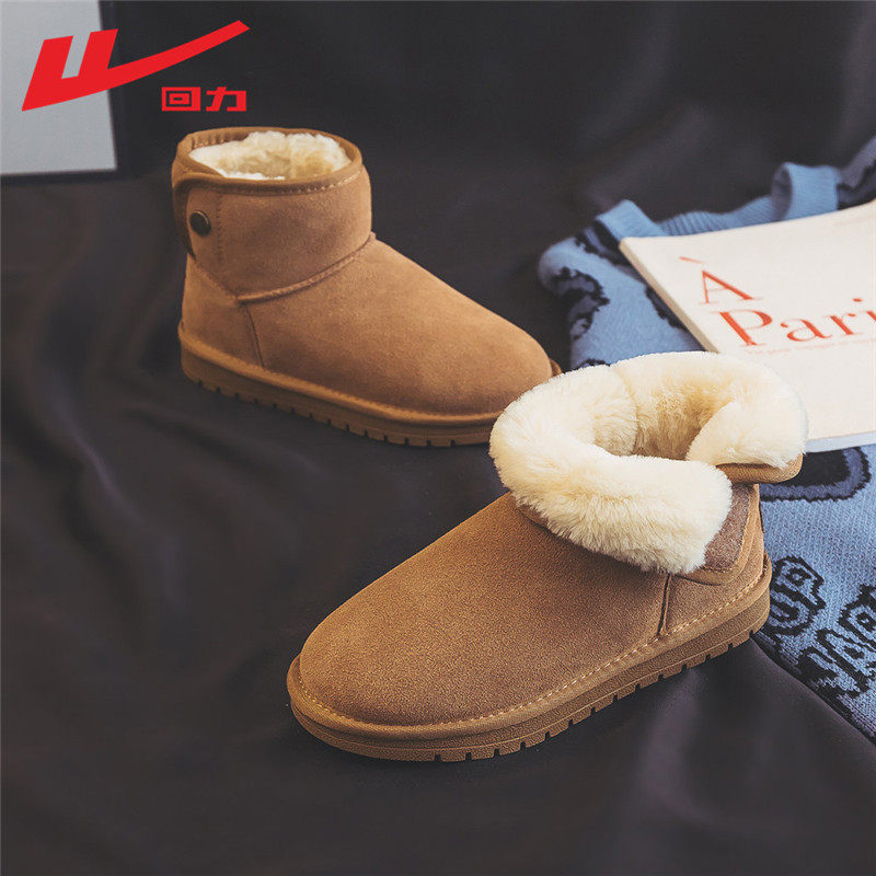 回力雪地靴男女2025冬季新款加绒加厚棉鞋牛皮防滑保暖厚底面包鞋