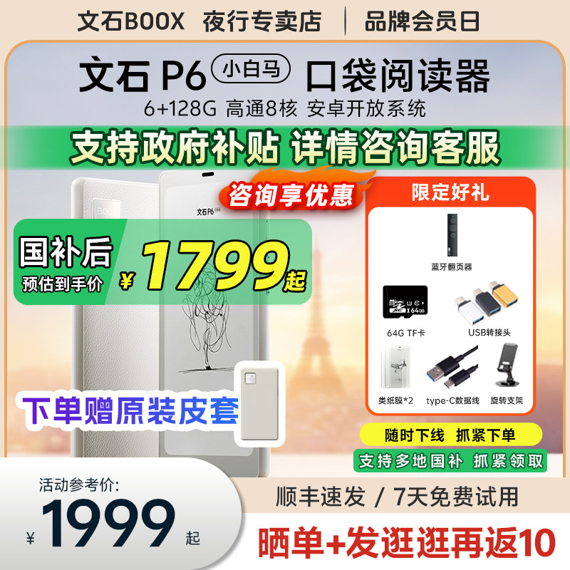 【支持国补 送原装皮套】文石BOOX P6小白马6.13英寸电子书p6pro小白马口袋阅读器墨水屏手机款便携电纸书