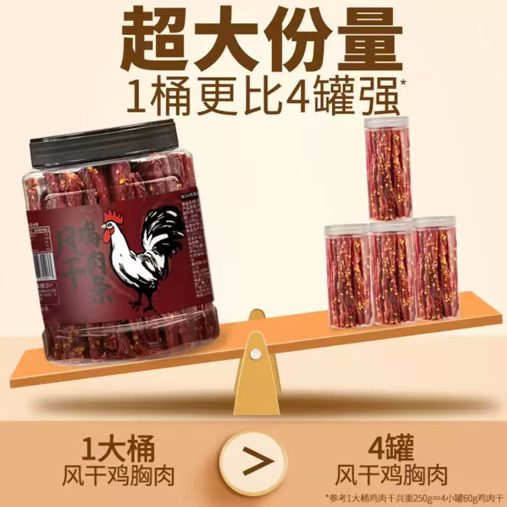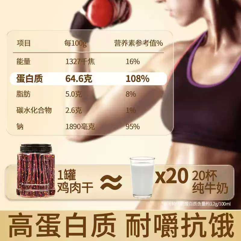 2大罐风干鸡肉条五香手撕耐嚼解馋健身充饥休闲零食大桶鸡胸肉