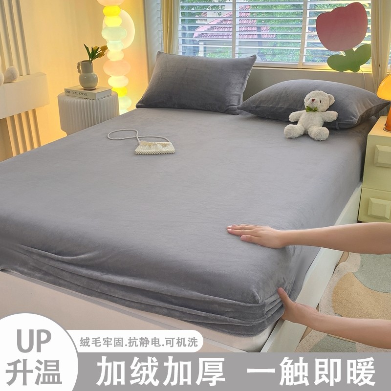 2025新款牛奶绒床笠单件加厚学生宿舍单人保护床罩枕套三件套纯色