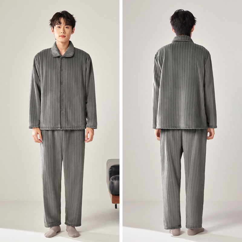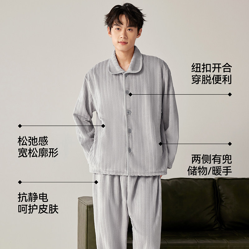 冬季珊瑚绒男士睡衣三层夹棉加厚加绒法兰绒秋冬款家居服保暖套装