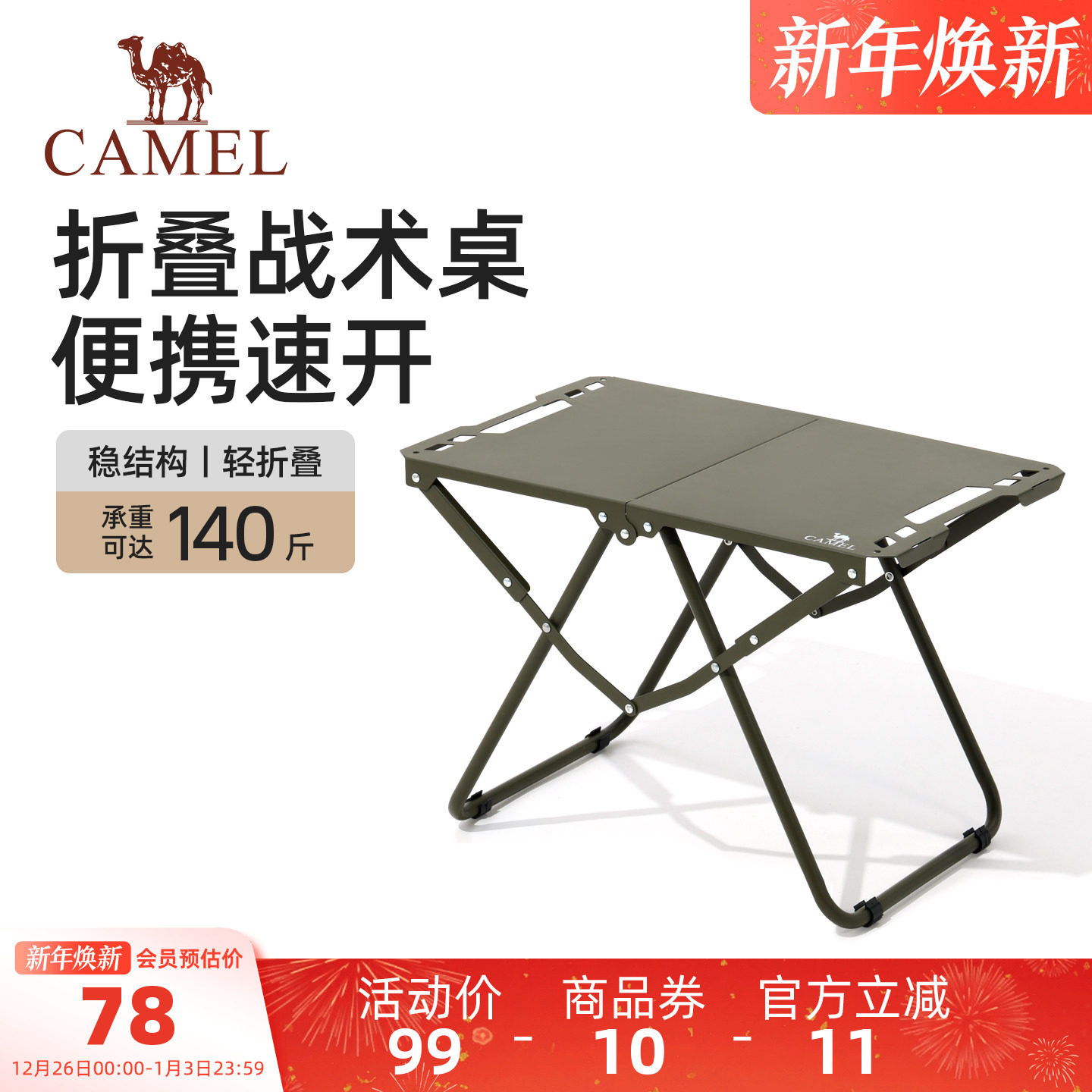 骆驼户外折叠桌子对折野外便携式露营野餐多功能轻量化战术桌餐桌