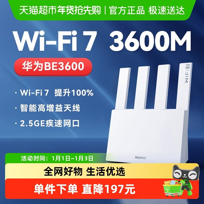 华为路由器wifiBE3600家用千兆无线穿墙高速路由器2025新款be3pro