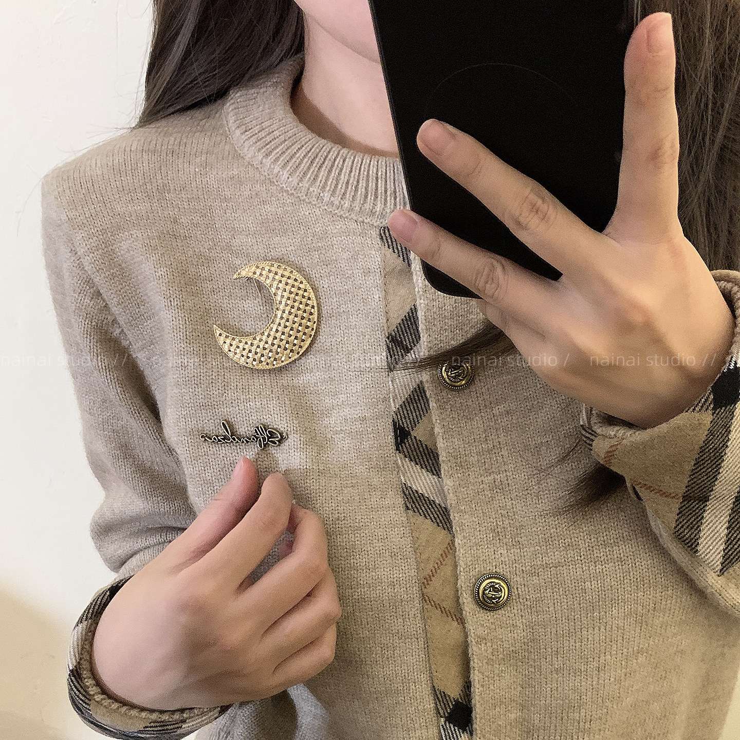 复古宫廷风胸针~月亮土星蝴蝶结胸花中古vintage大衣外套别针配饰