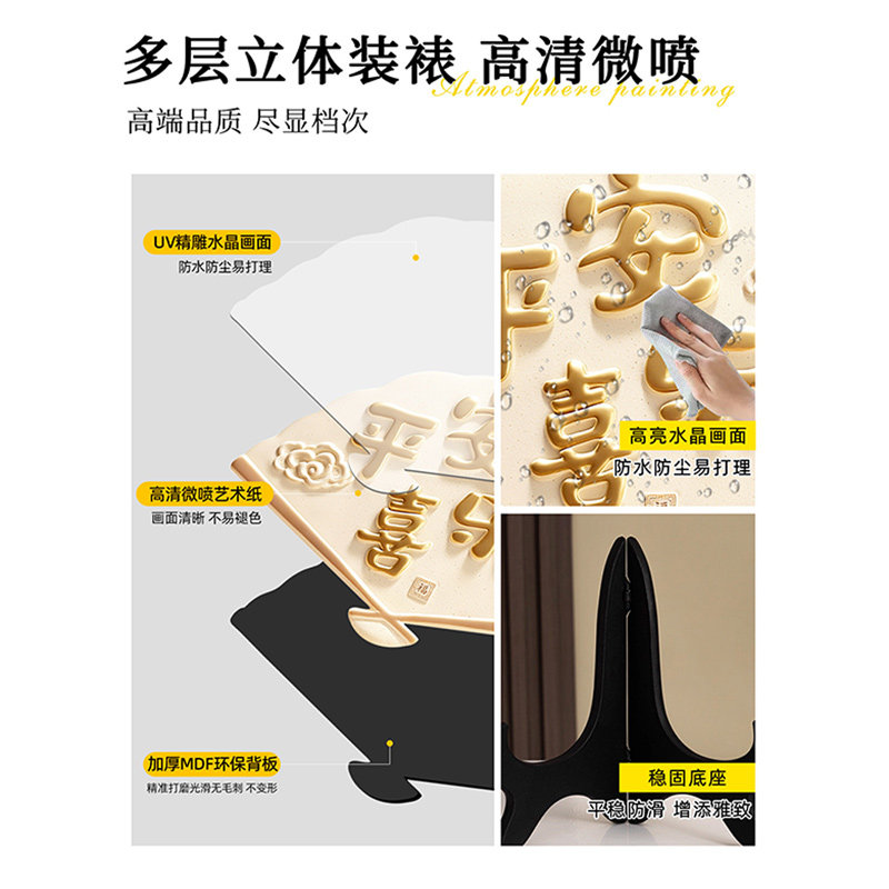 平安喜乐摆件新中式客厅桌面装饰画电视柜新家玄关柜高级感摆台画
