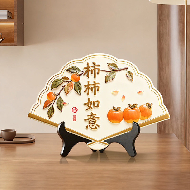 新中式餐厅装饰画饭厅墙面壁画客厅沙发背景墙挂画圆形柿柿如意画