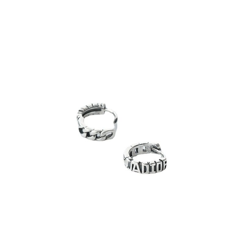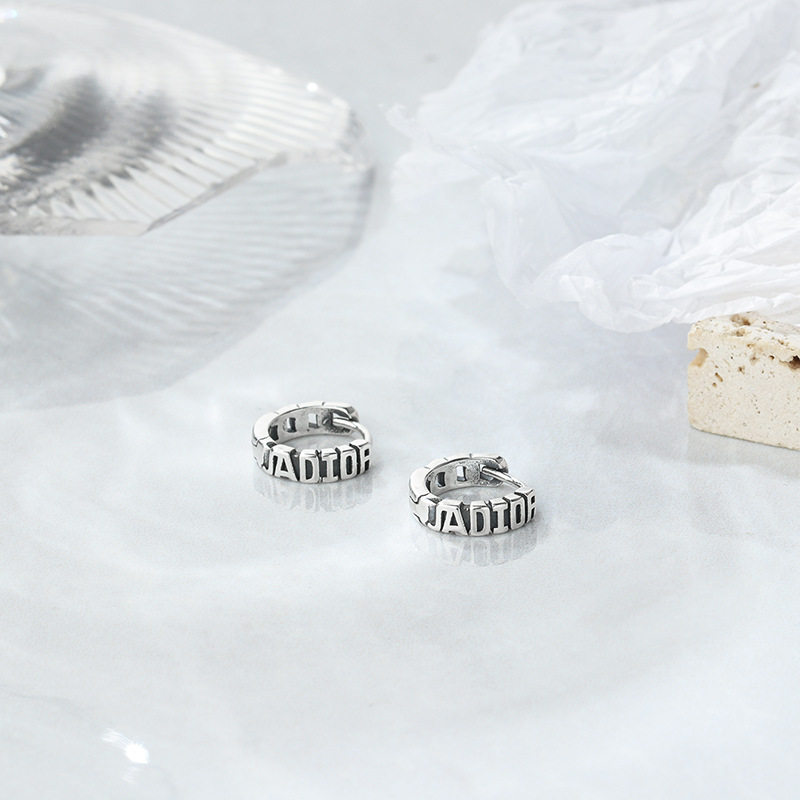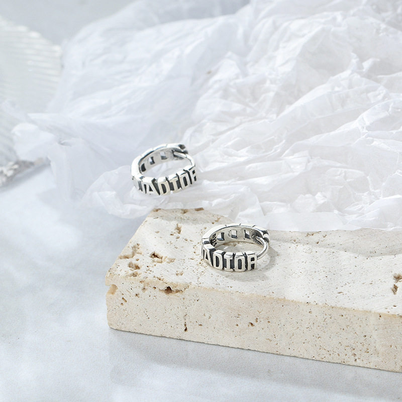 925纯银英文耳钉网红耳圈C形气质设计感小众港风复古耳环泰银耳饰