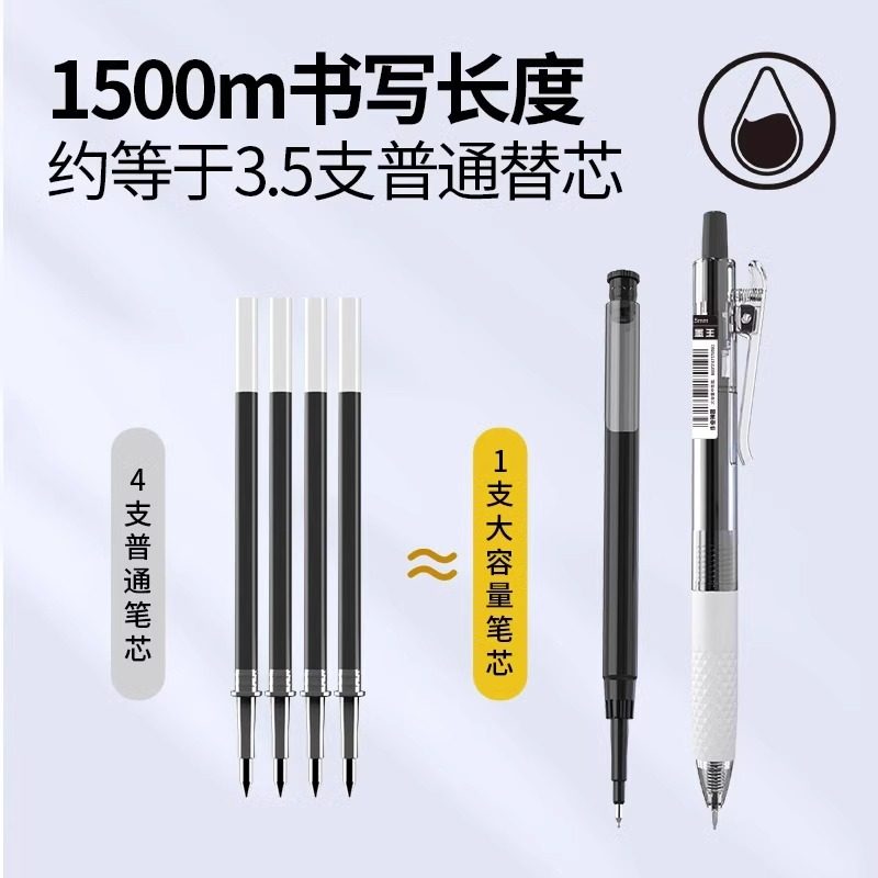 晨光J9001大墨王速干按动黑色中性笔学生用0.5大容量顺滑签字笔作业书写黑笔ST笔头红笔大魔王笔芯考试刷题笔