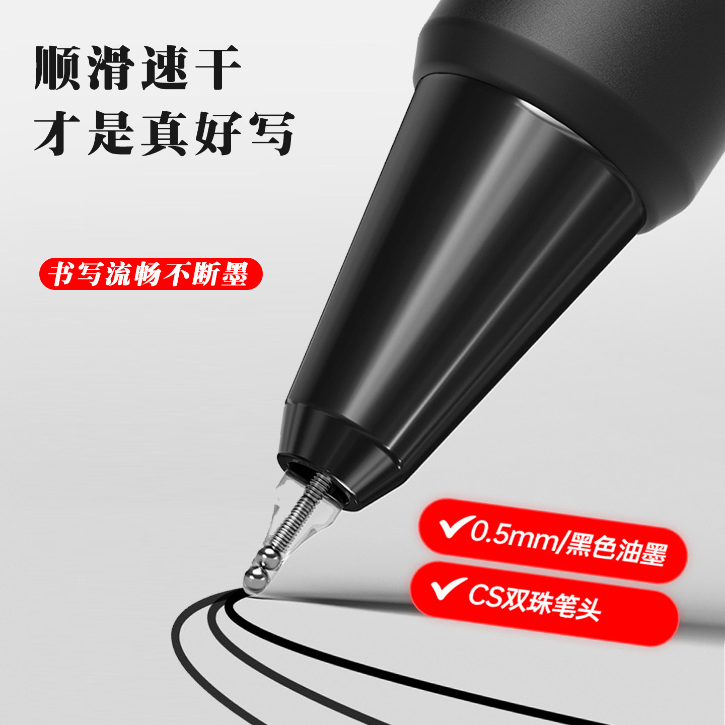 晨光按动中性笔黑色笔速干顺滑高颜值红蓝碳素笔考试办公用签字笔