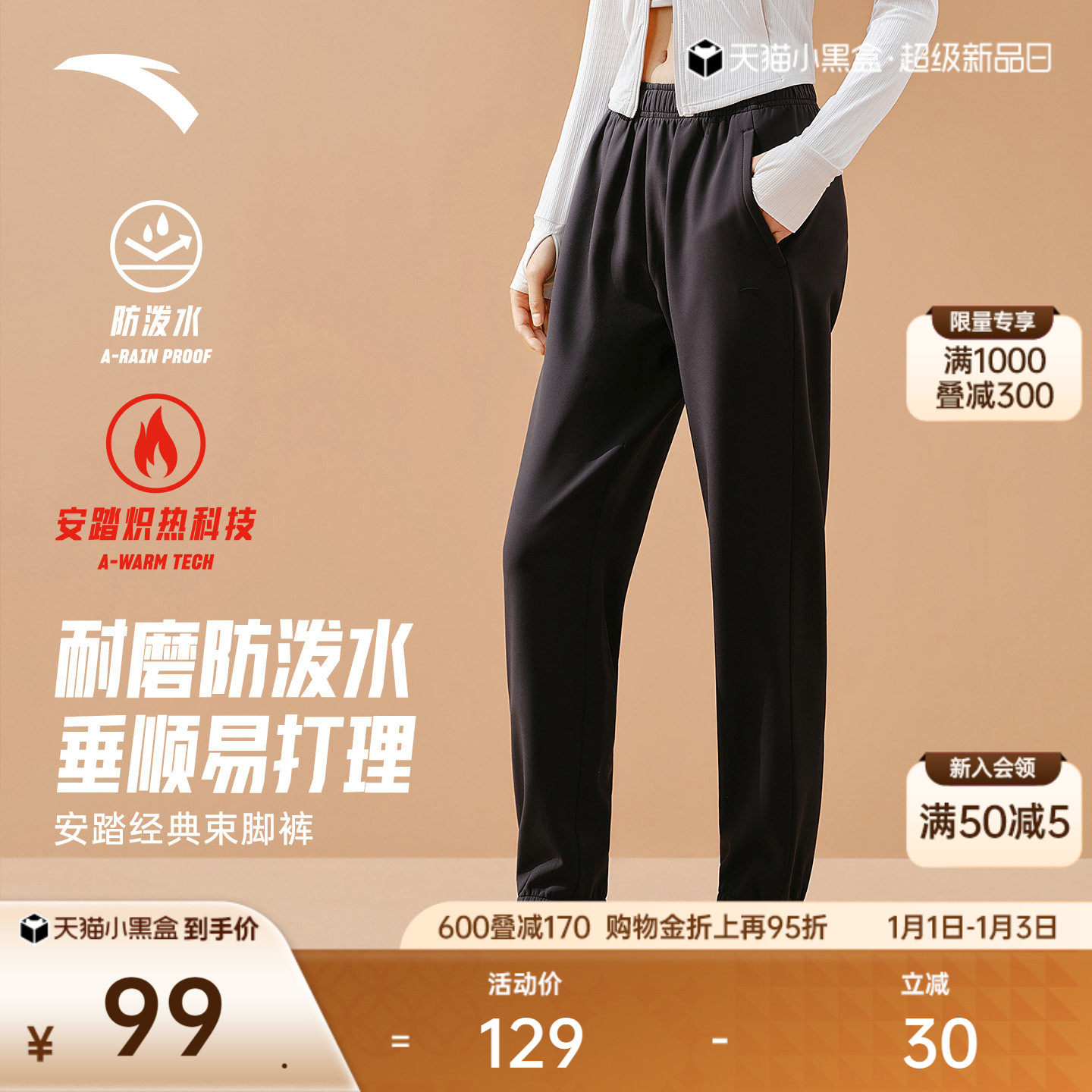 安踏防泼水运动裤女裤冬季新款加绒梭织长裤休闲束脚直筒裤通勤裤