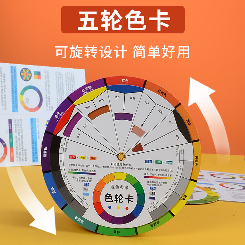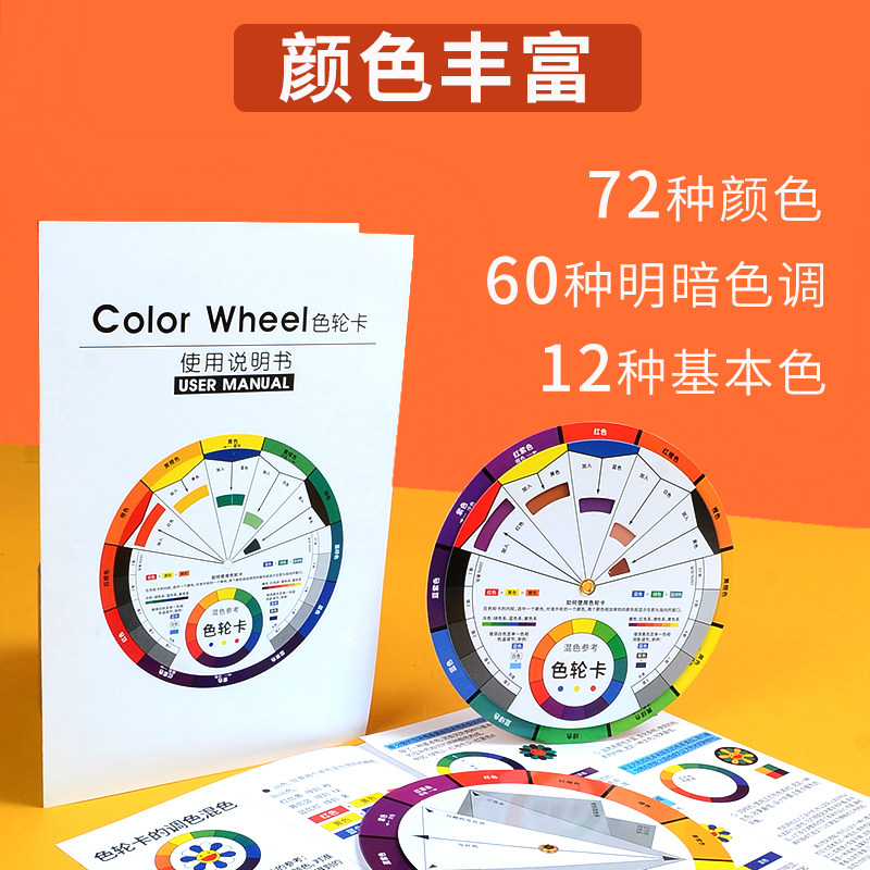 色轮卡12色相环挂图多功能三原色比例卡标准美术便携式rgb小色轮盘色卡纸色彩对比颜色搭配油画调色配色神器
