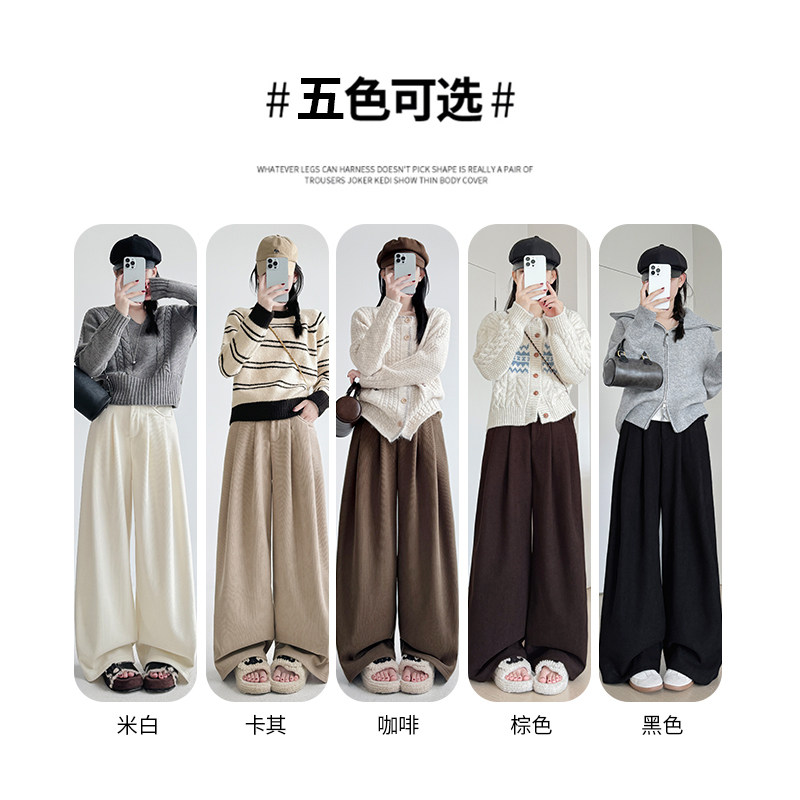 唐狮DESSO秋冬新款糯米裤高腰垂感宽松加绒直筒阔腿裤5