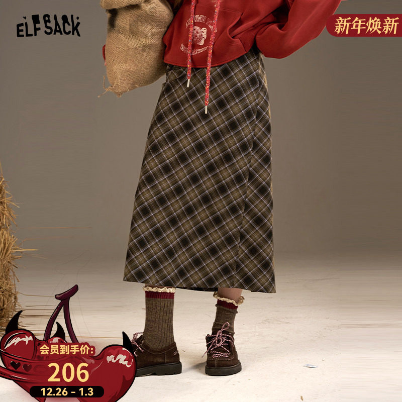 妖精的口袋复古格纹a字半身裙女2025年秋冬新款学院风显瘦长裙子