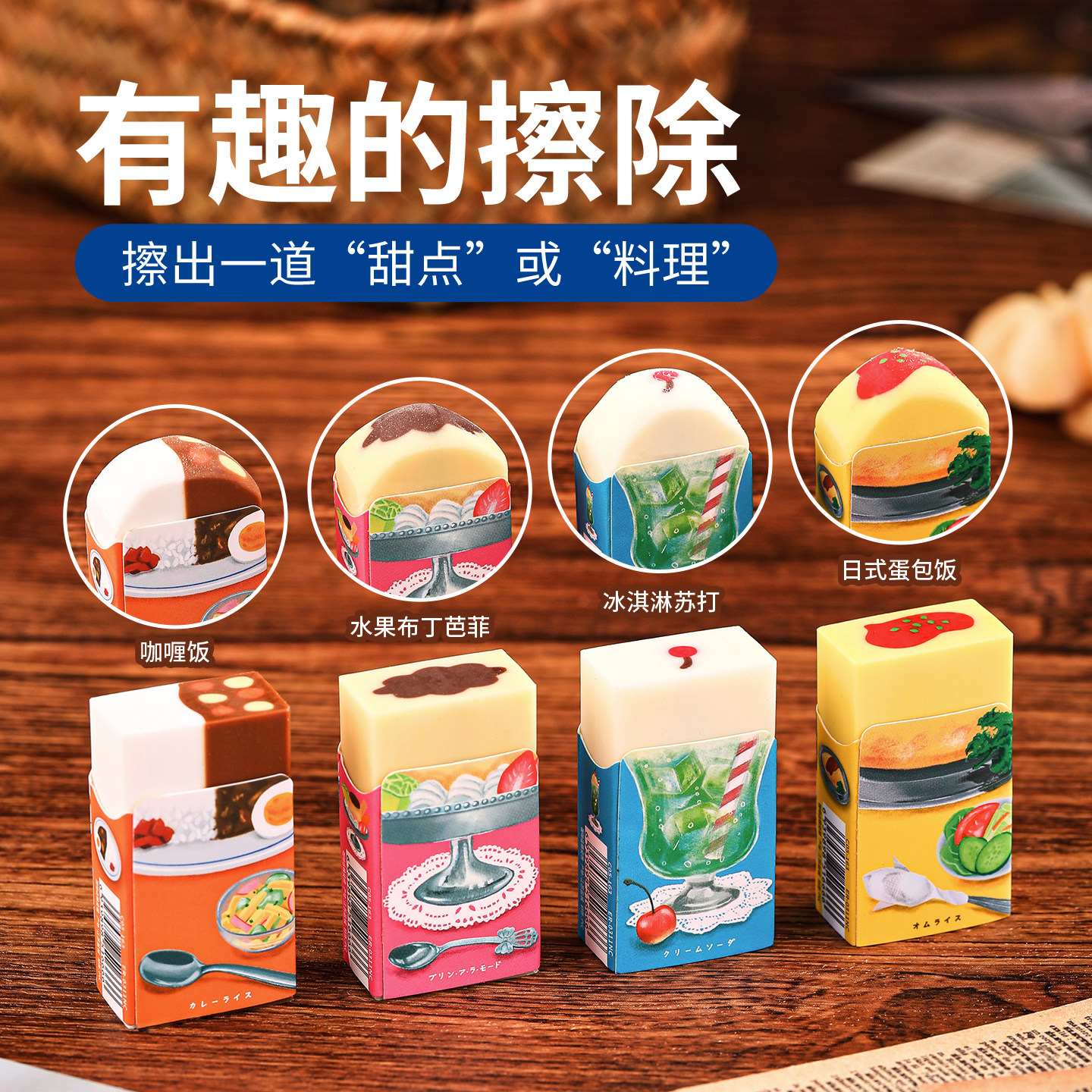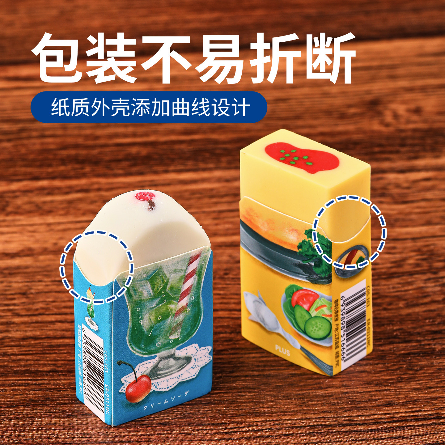 日本PLUS普乐士咖啡店橡皮擦可爱创意仿真咖喱蛋包饭夹心聚屑橡皮擦字成线素描绘图象皮儿童学生用文具
