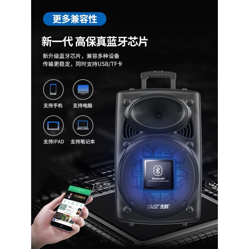 先科512广场舞音响户外12寸移动拉杆音箱蓝牙K歌促销大功率充电带