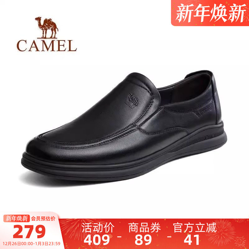 骆驼男鞋2025秋季新款软底软皮潮流英伦正装商务休闲男士牛皮皮鞋