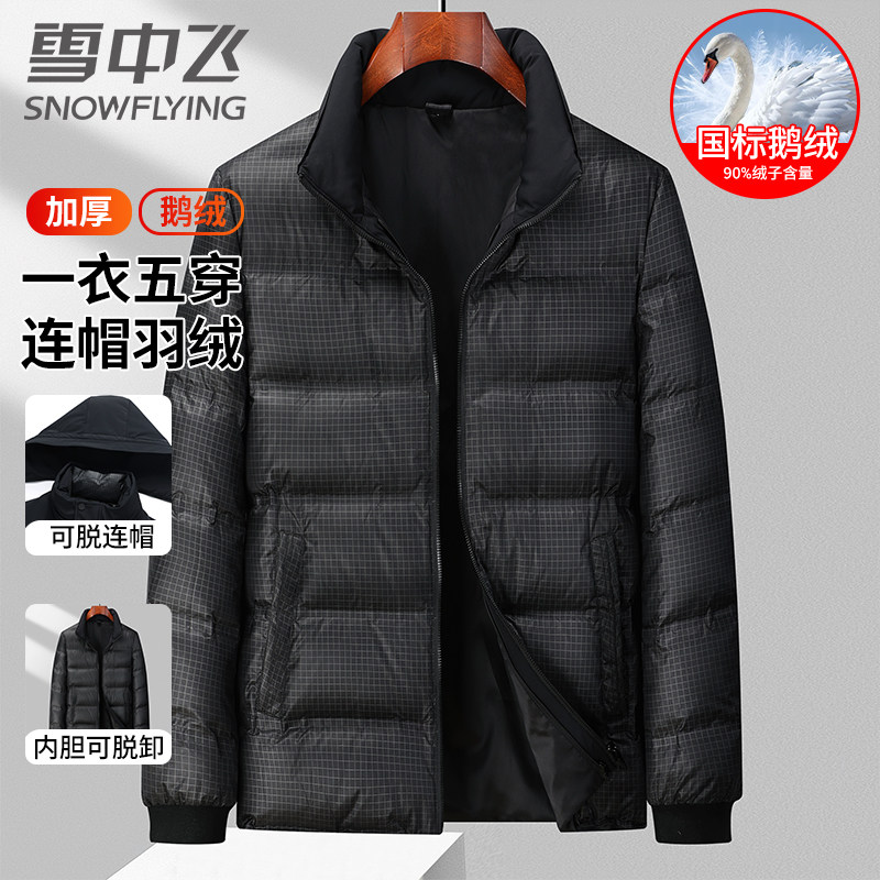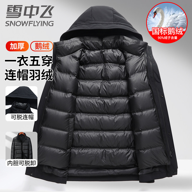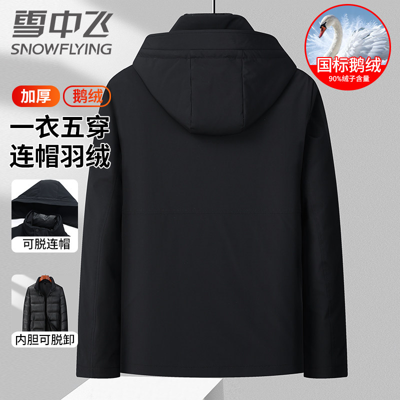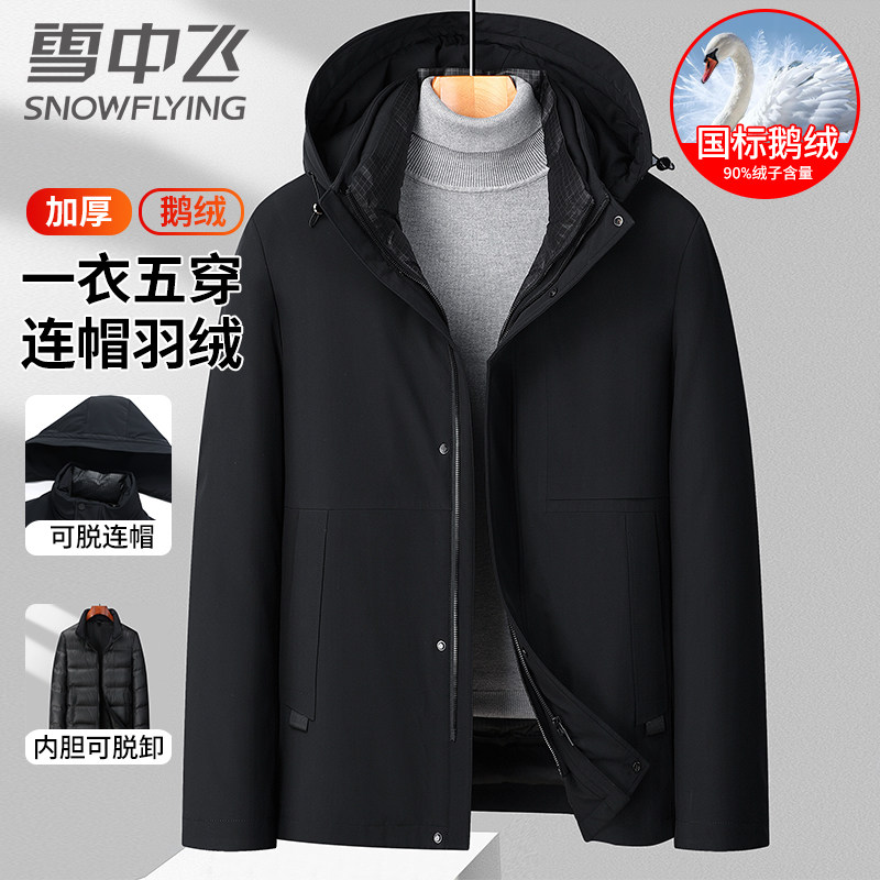 【鹅绒】雪中飞羽绒服男冬季防风三合一连帽中老年加厚保暖外套新