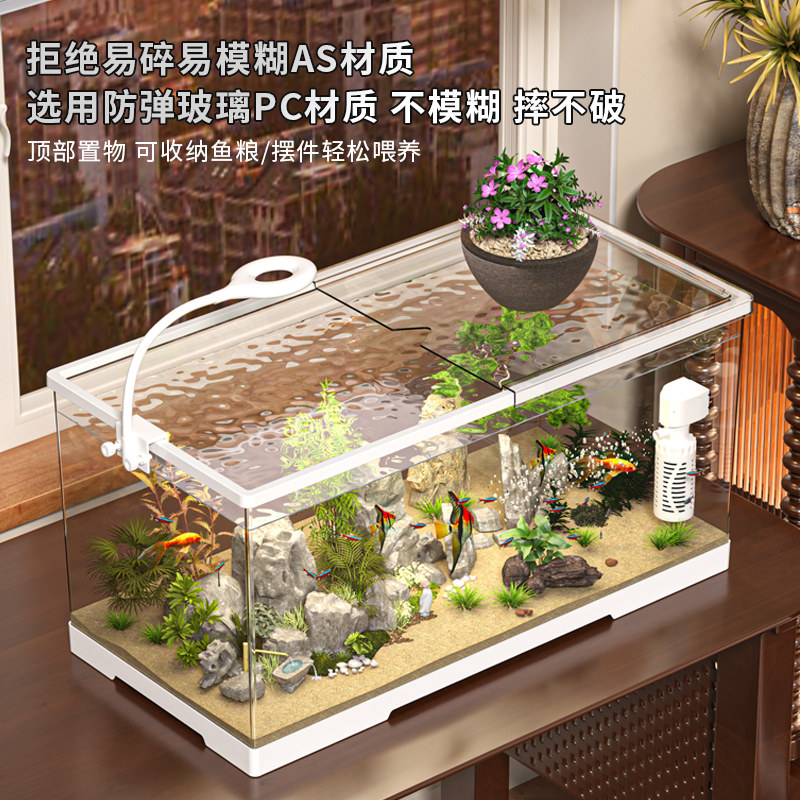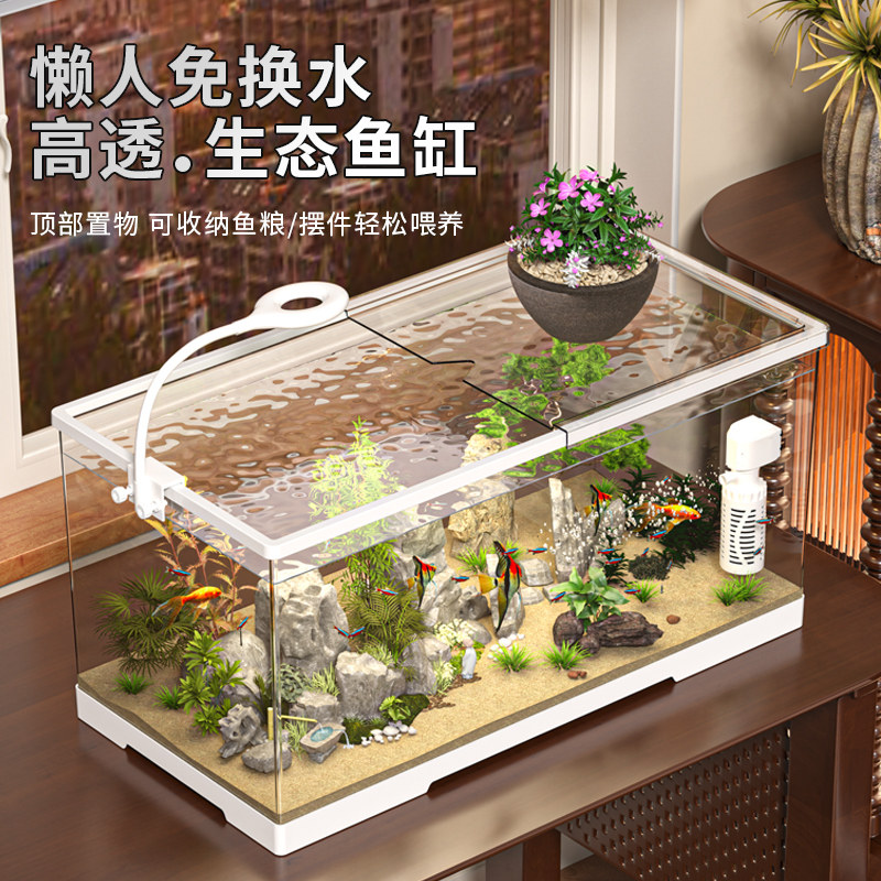 鱼缸家用桌面水草造景生态缸客厅小型带盖透明过滤制氧一体水族箱