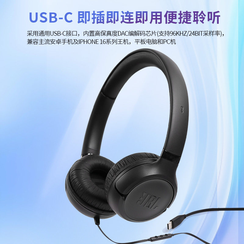 JBL TUNE530C头戴式有线耳机运动音乐电脑游戏typec接口耳机耳麦