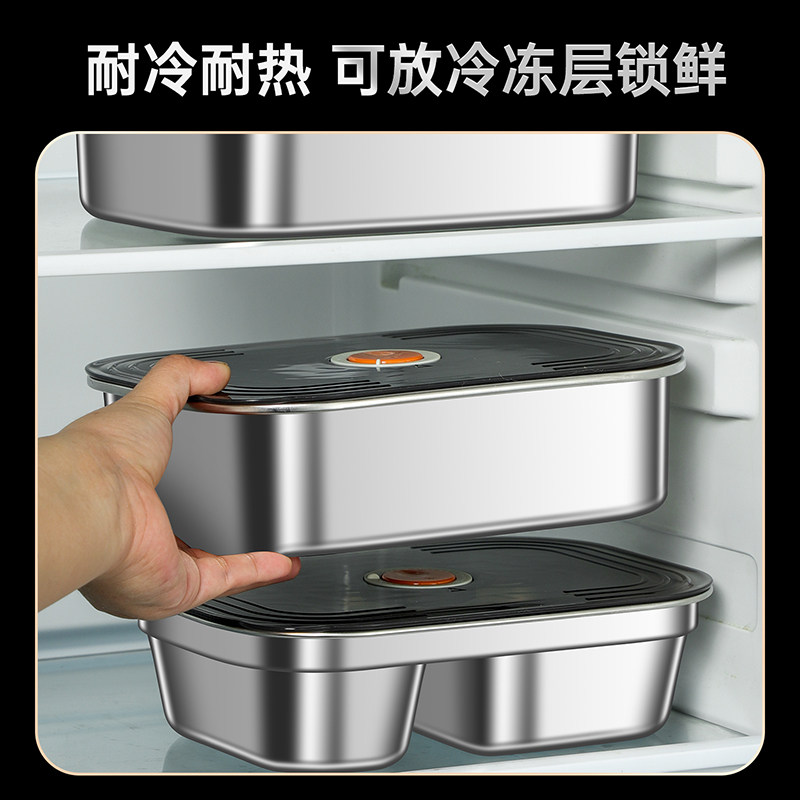 不锈钢保鲜盒收纳盒密封带盖食品级商用摆摊野餐饭盒冰箱专用盒子