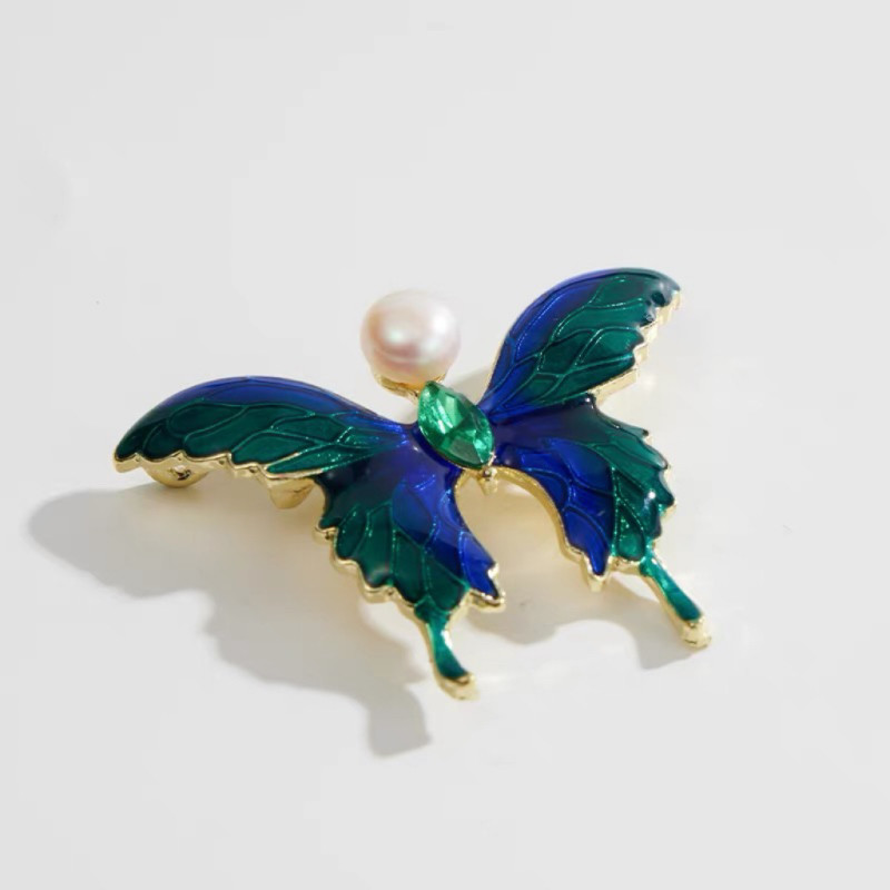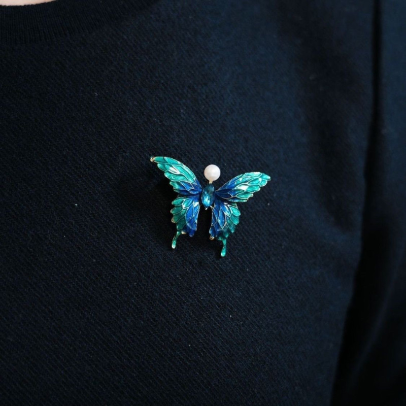 诸暨珍珠彩釉蝴蝶胸针高级名媛气质女人胸花经典百搭七夕佳节礼物