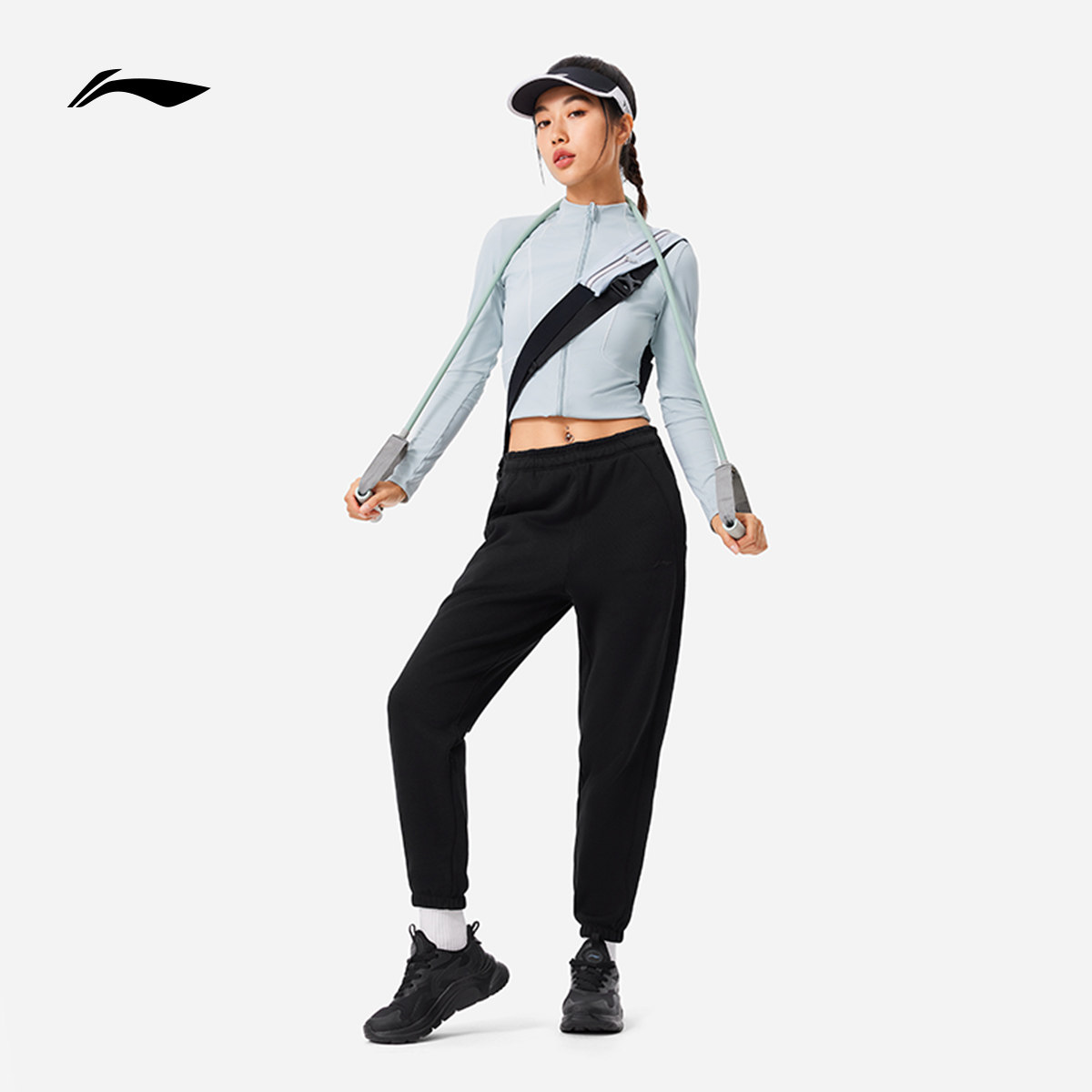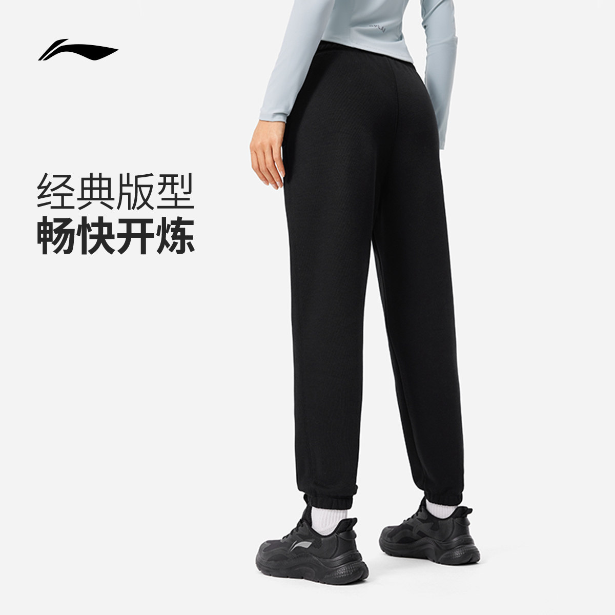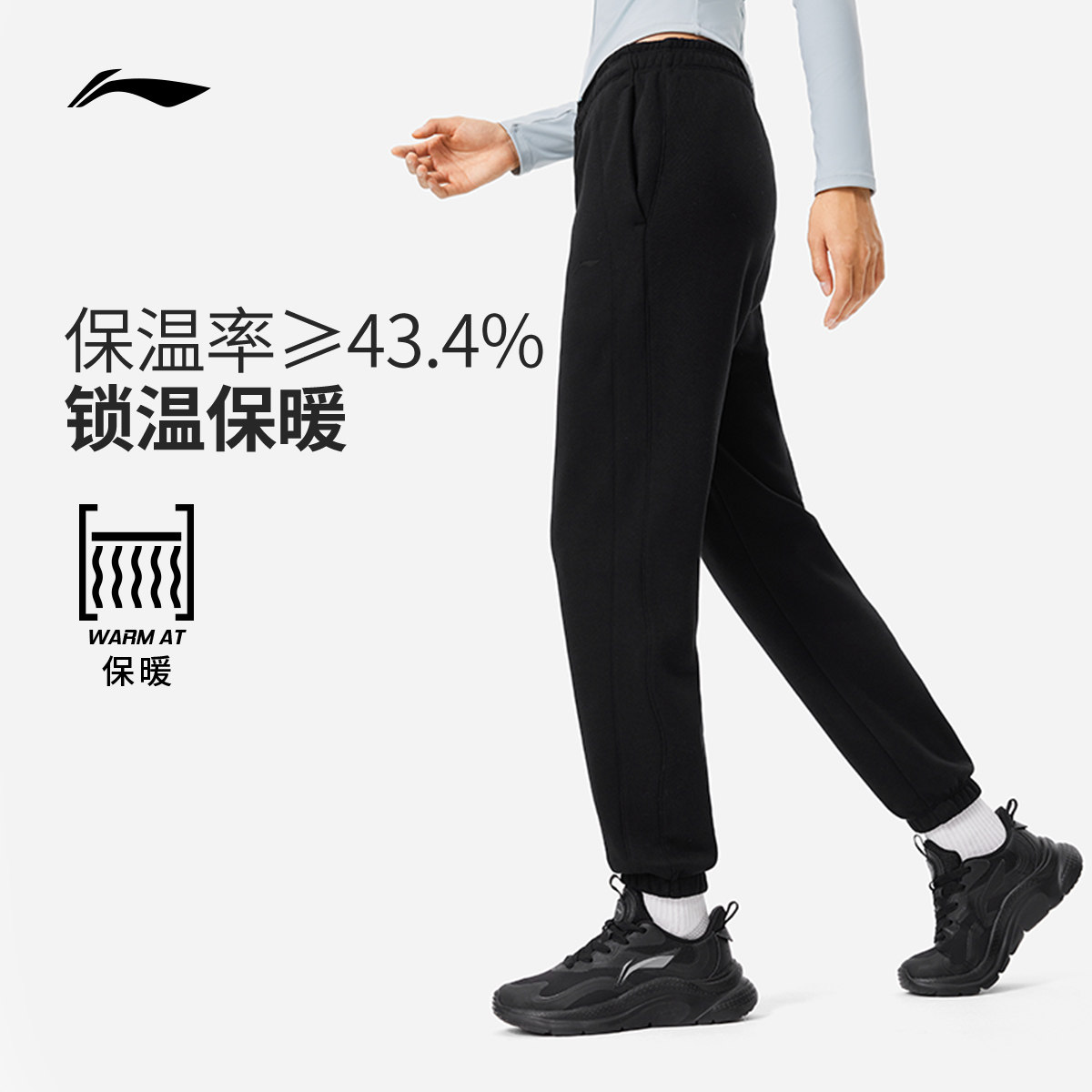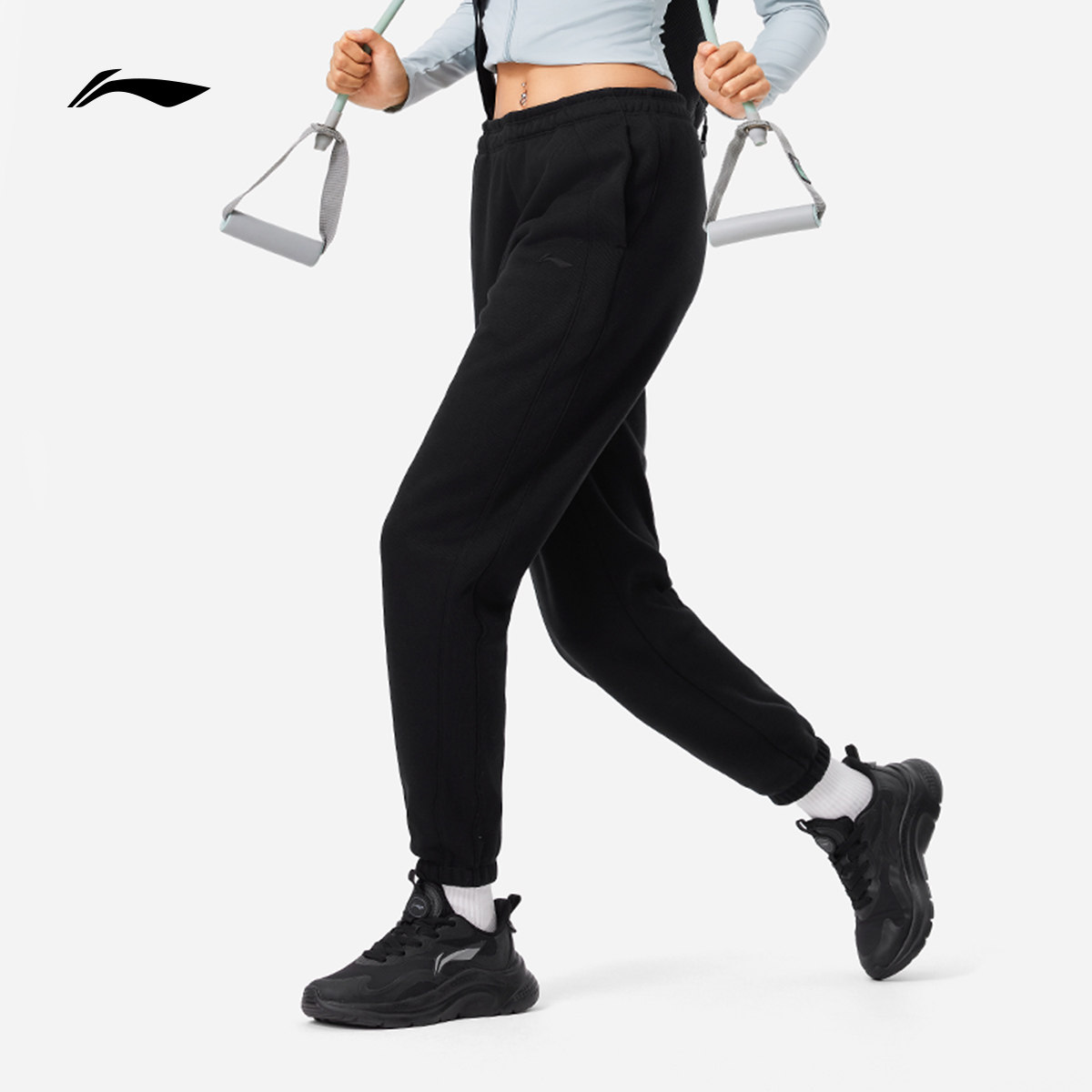 李宁卫裤女士官方裤子健身跑步长裤子黑色加绒保暖针织运动裤女