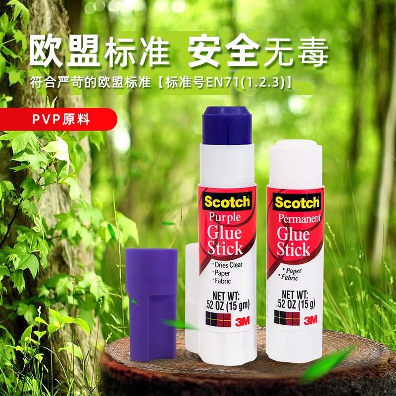 3M思高固体胶棒高粘度无毒儿童固体胶可水洗cos遮眉白色25g胶棒紫色PVP变色胶8g/15g文具用品学生用强力胶棒