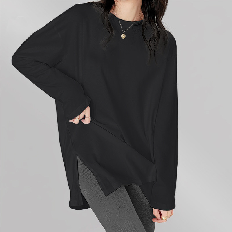 春秋莫代尔长袖打底衫女圆领休闲大码纯色上衣宽松T恤衫薄款秋衣