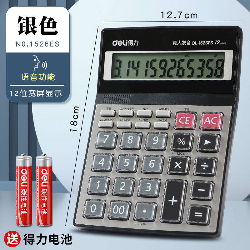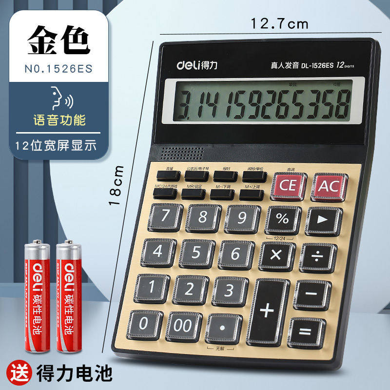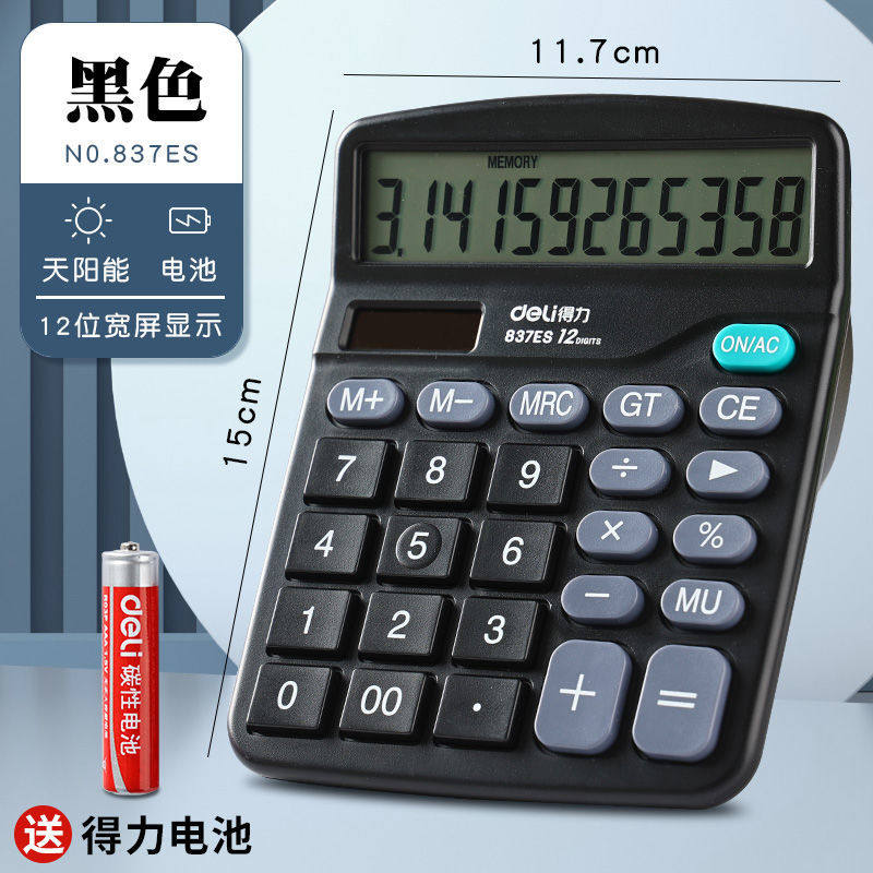 得力计算器太阳能双电源大按键经久耐用财务会计办公专用计算机语音大屏桌面电池显示位数