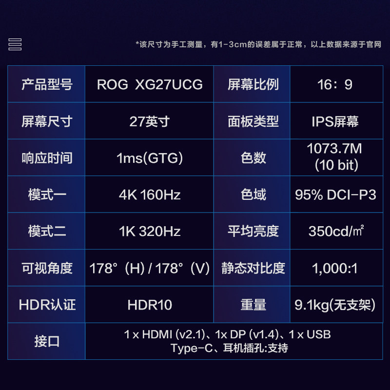 ROG XG27UCG/-W绝神27双模电竞显示器XG27UCS 4K 160Hz高刷电脑屏幕IPS屏玩家国度