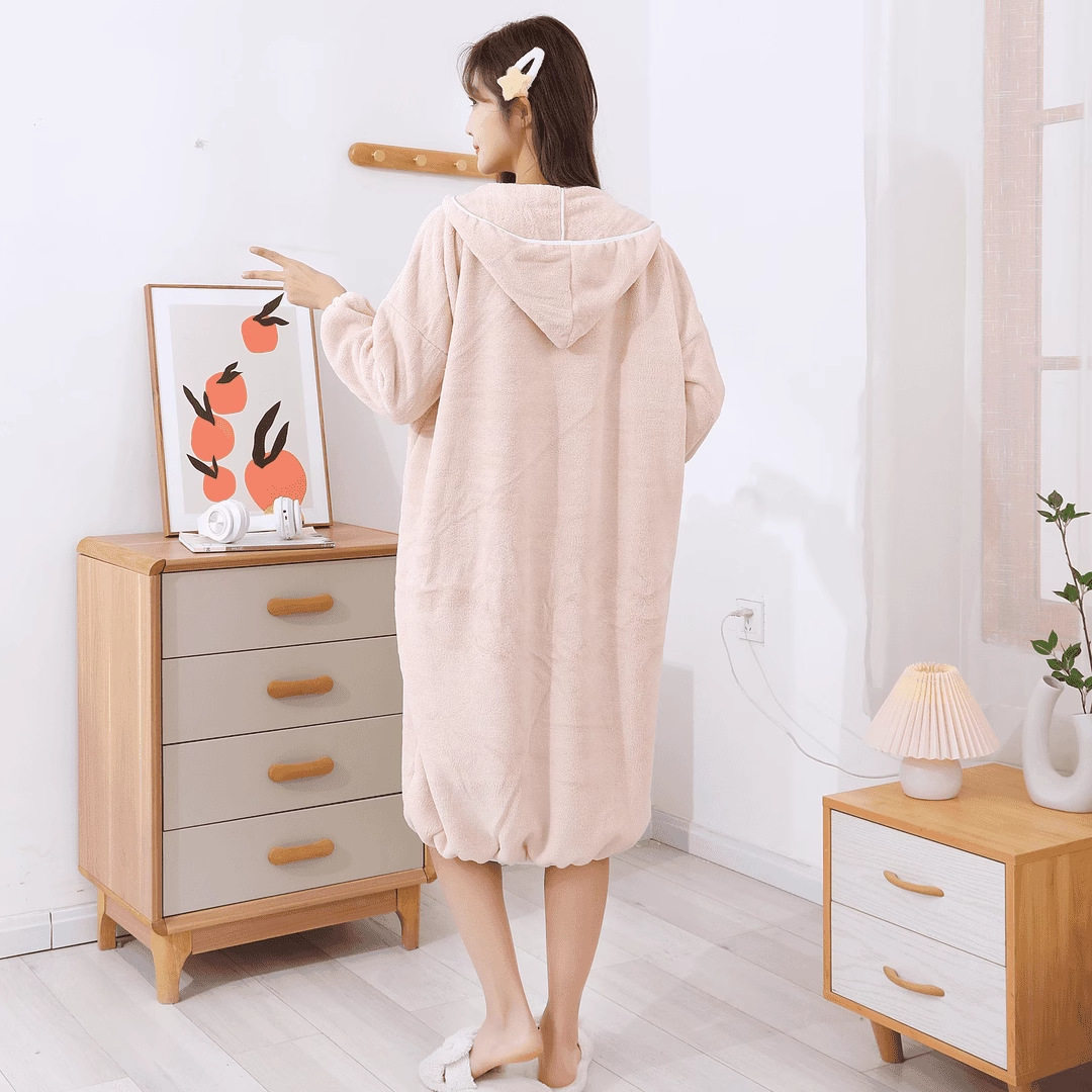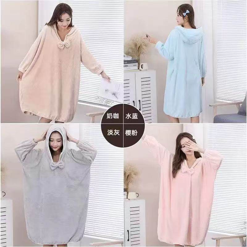 秋冬浴袍可穿浴巾女家用珊瑚绒吸水柔软速干浴裙洗澡睡袍睡衣连帽