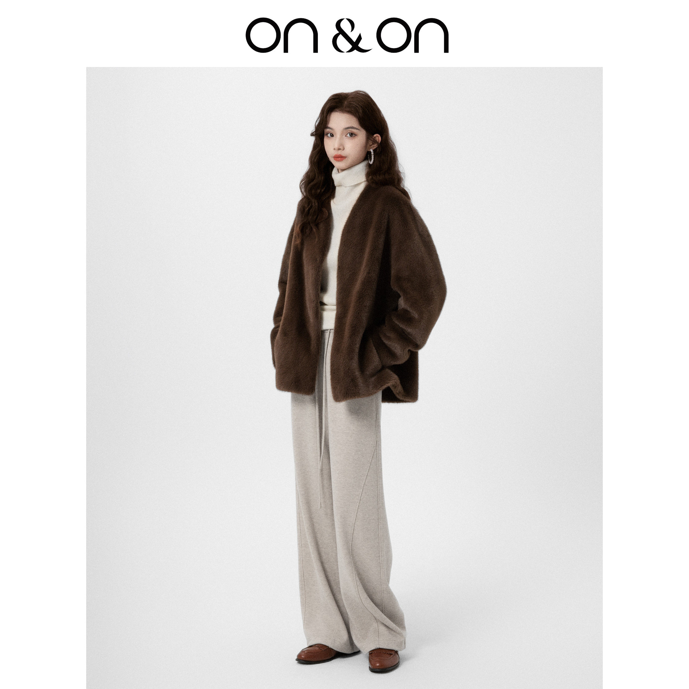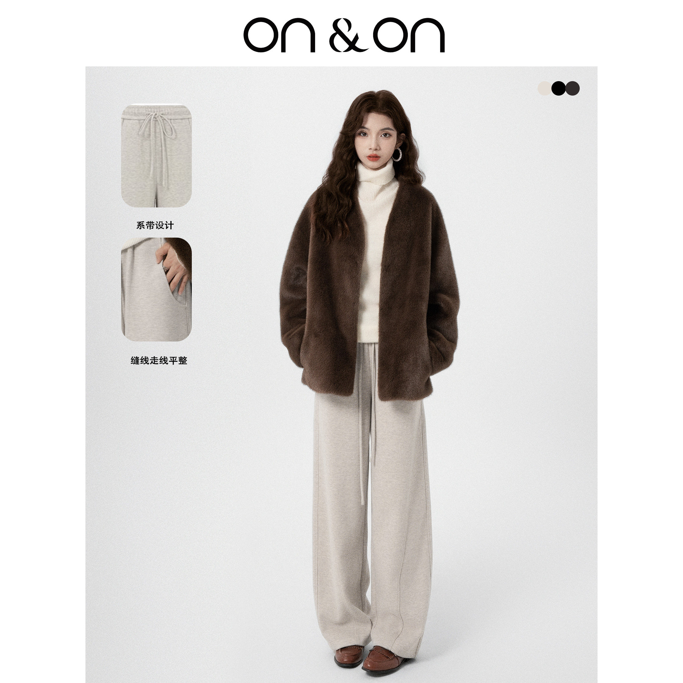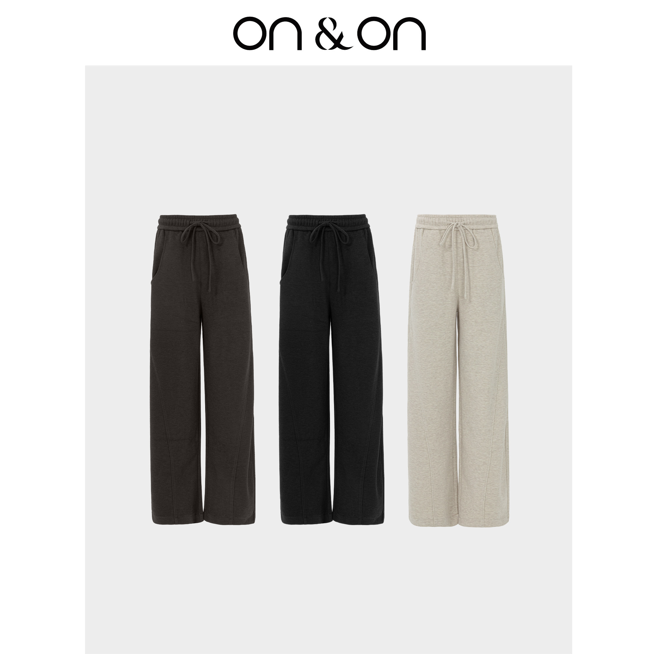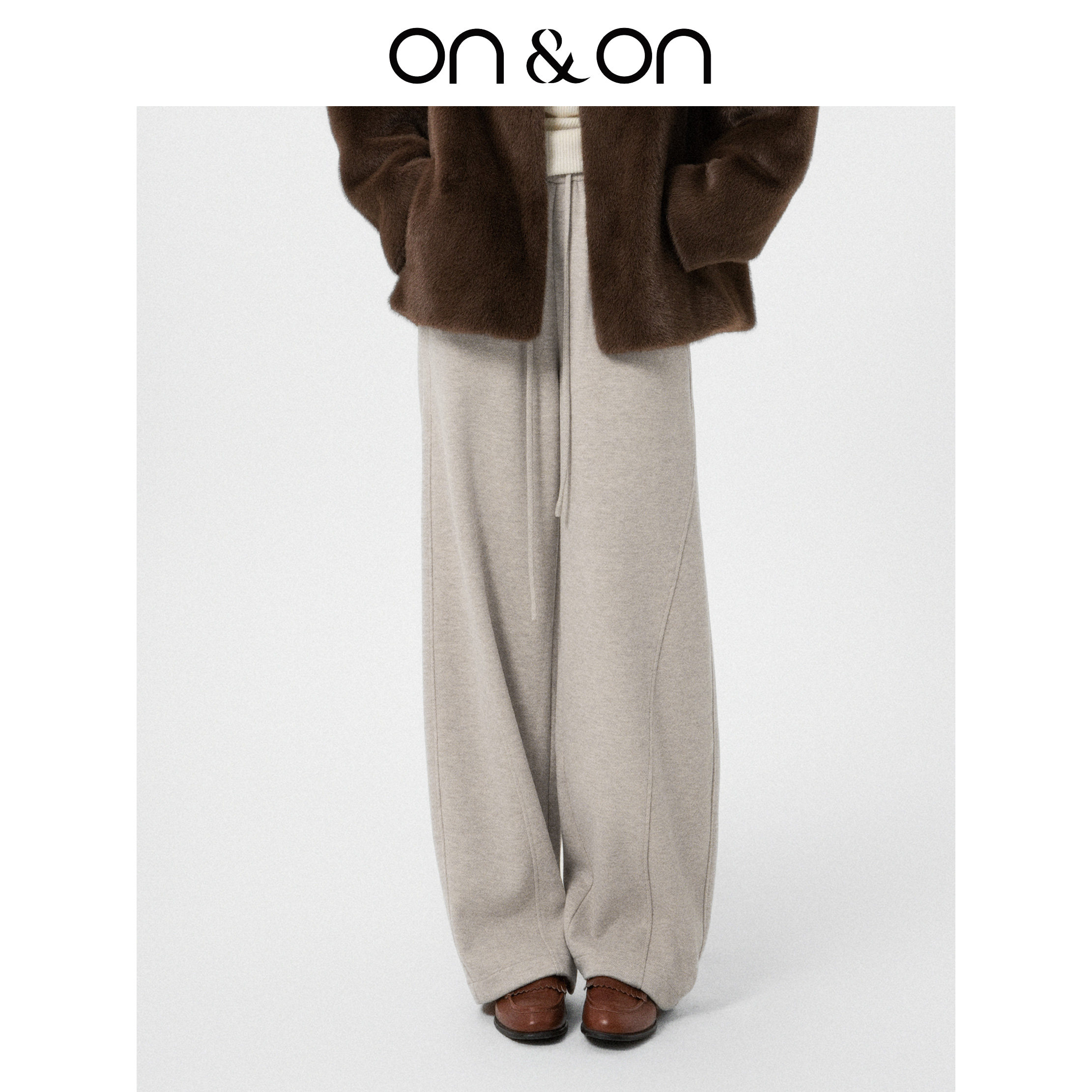 ON&ON/安乃安2025冬季新款高腰显瘦松紧抽绳垂感羊毛镰刀拖地裤