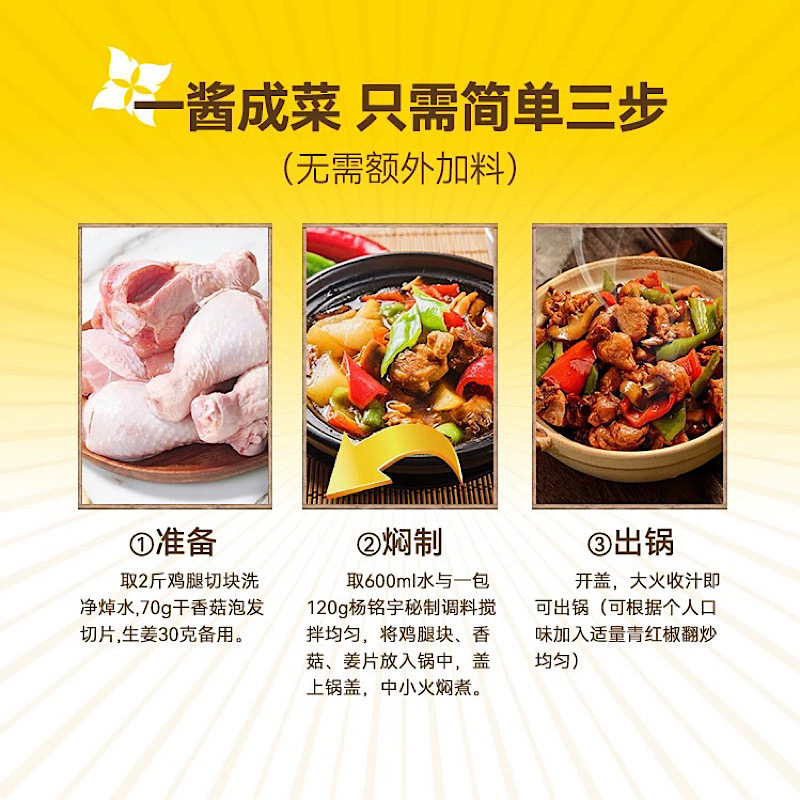 杨铭宇黄焖鸡酱料汁120gx3袋家庭黄焖鸡米饭餐饮调味汁砂锅菜佐料