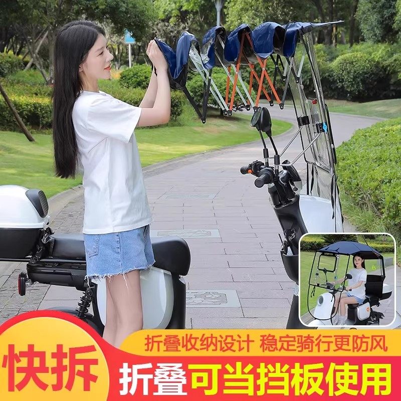 电动车雨棚篷新款可折叠可拆电瓶摩托车防晒防雨挡风伸缩式遮阳伞