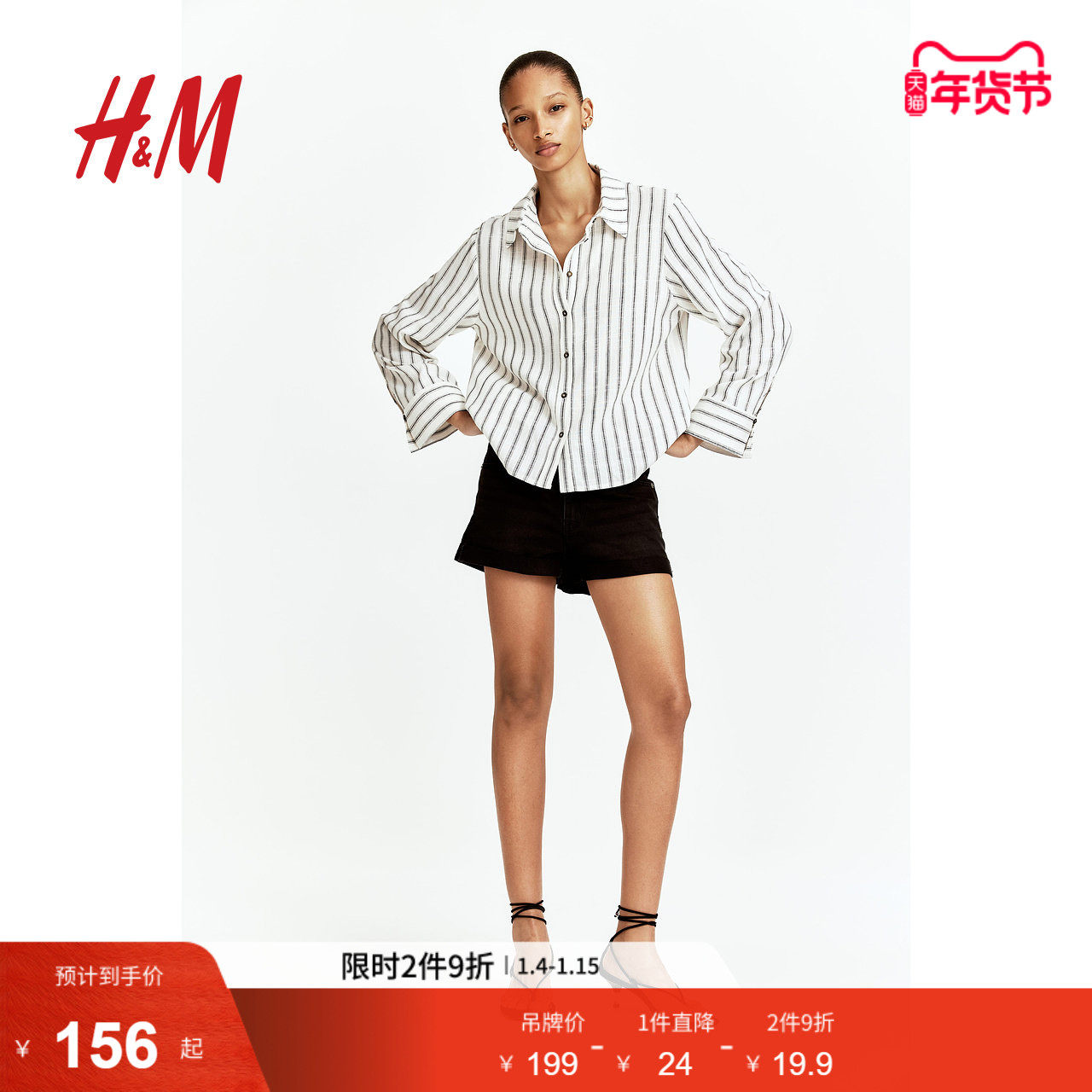 HM女装衬衫春季新款休闲透气松驰感亚麻混纺衬衫1277600