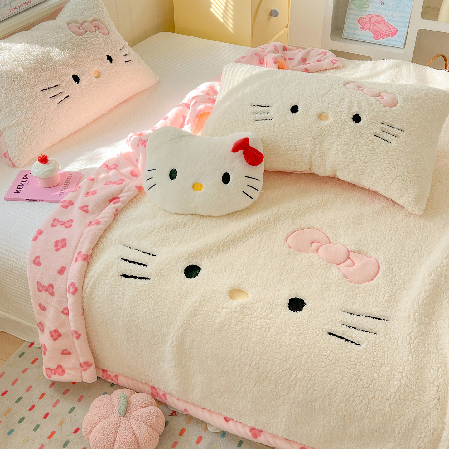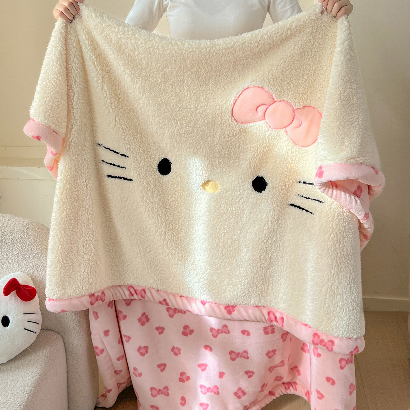 可爱kt猫牛奶绒毛毯2025新款秋冬办公室午睡毯子羊羔绒盖毯沙发毯