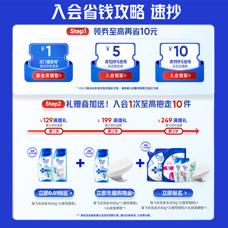 【店播专属】海飞丝清爽去屑控油洗发水柔顺清洁洗头膏露男女任选