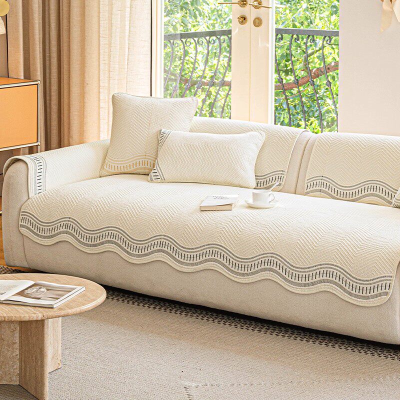 奶油风不规则异形雪尼尔沙发垫四季通用防滑沙发坐垫2025新款盖布