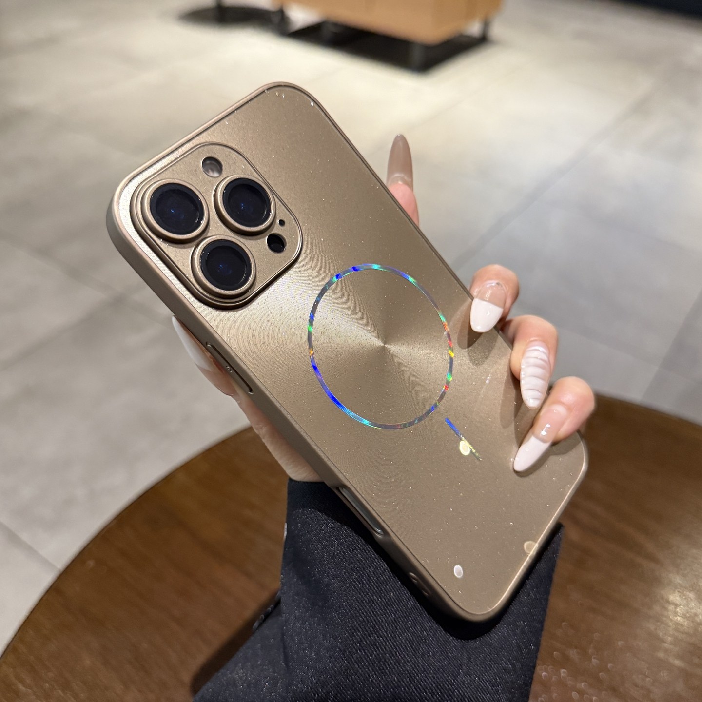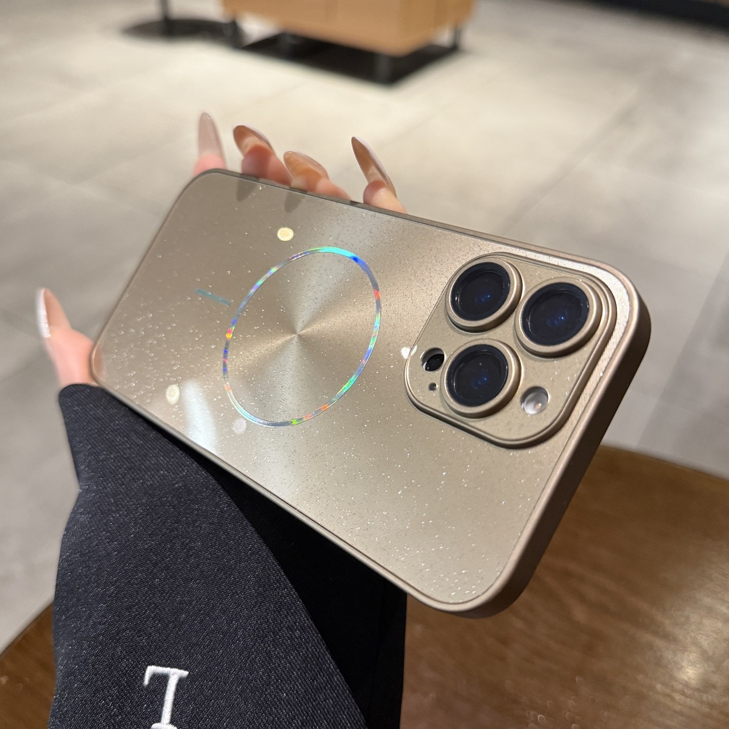 磁吸充电适用苹果16promax手机壳iphone15pro新款极光镭射CD纹14全包镜头膜13闪粉沙漠金12高级Magsafe保护套
