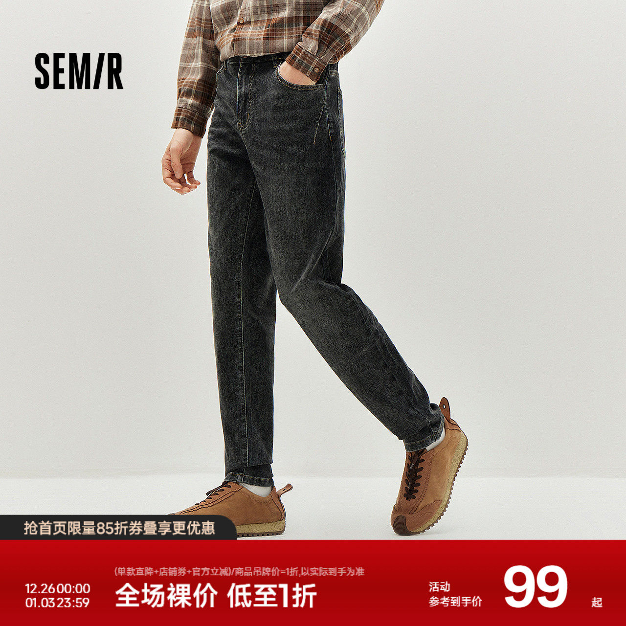 森柔|森马牛仔裤男生春季复古都市合体小脚裤子日常通勤弹力长裤