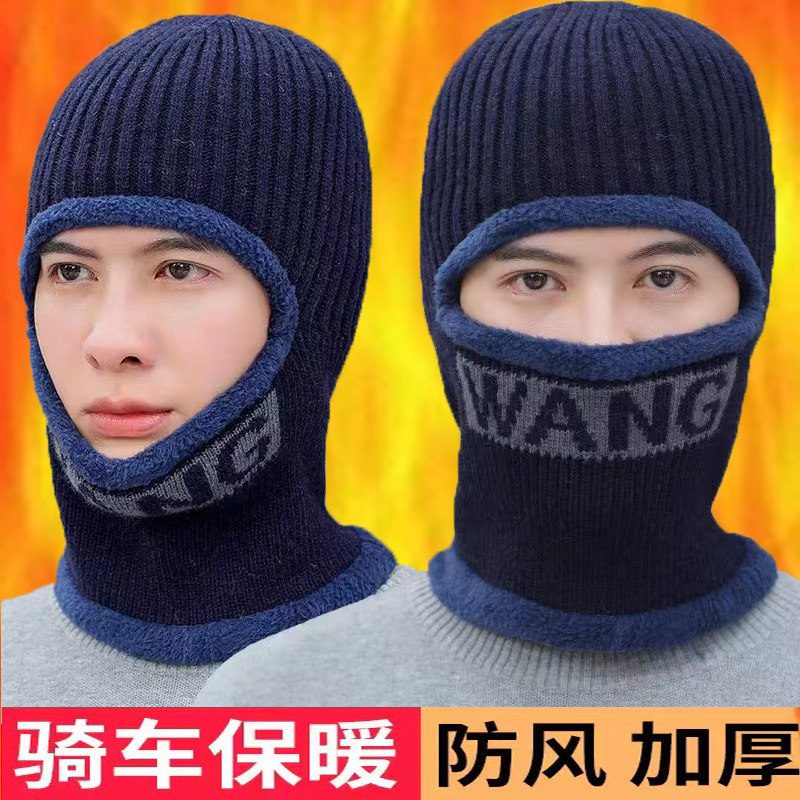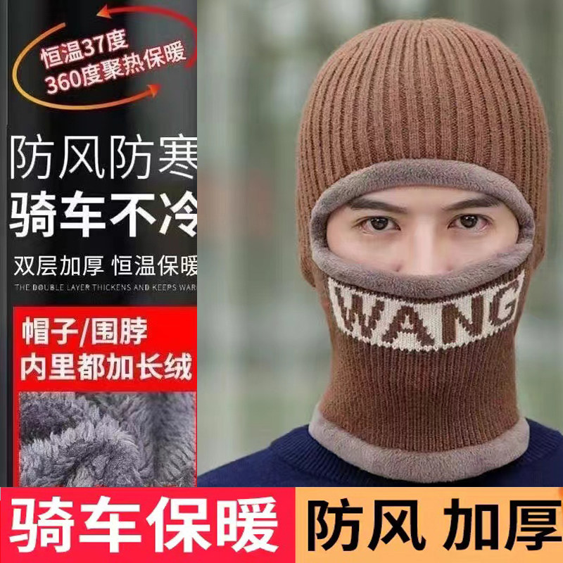 帽子男士冬季加厚保暖毛线帽围脖一体骑车防风防寒帽针织披肩防冻