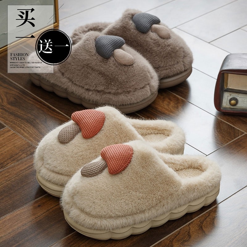 买一送一棉拖鞋女士冬季室内家居情侣一对可爱保暖厚底毛绒棉拖男