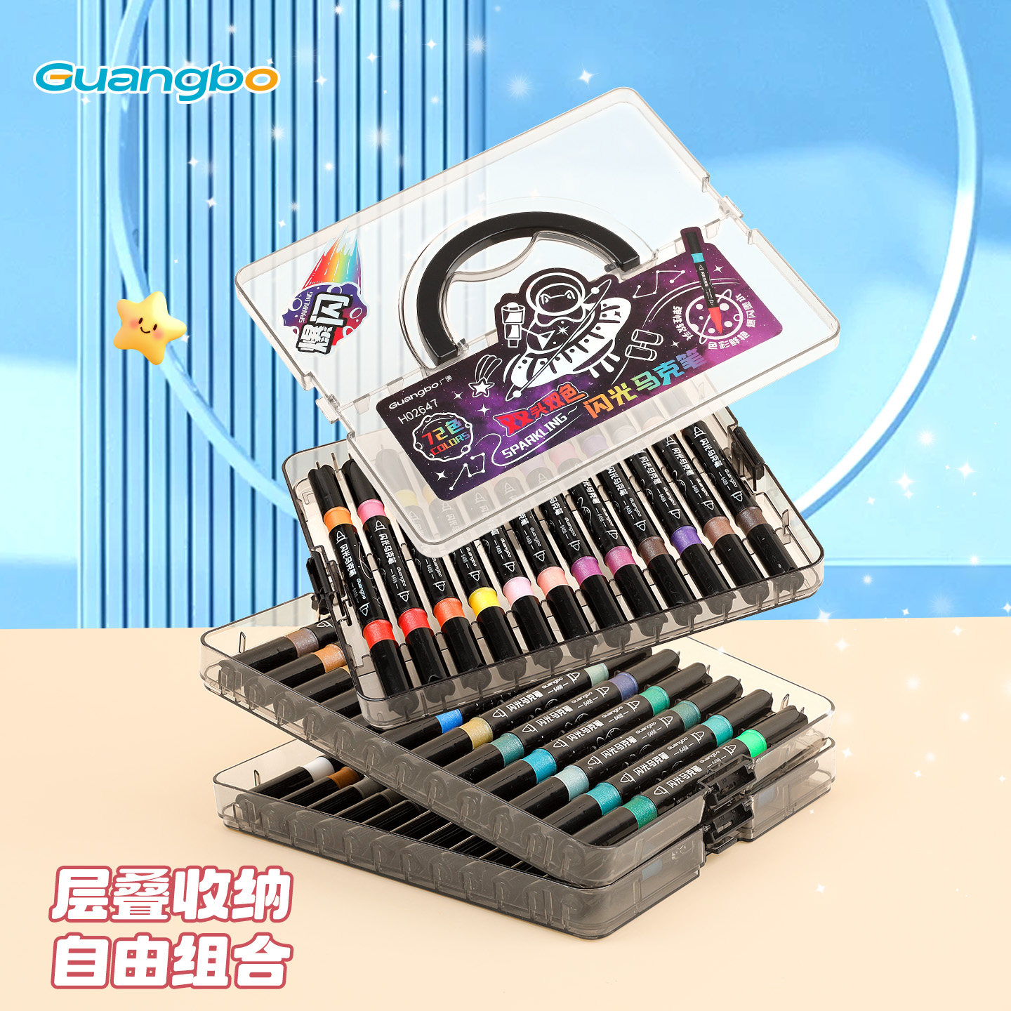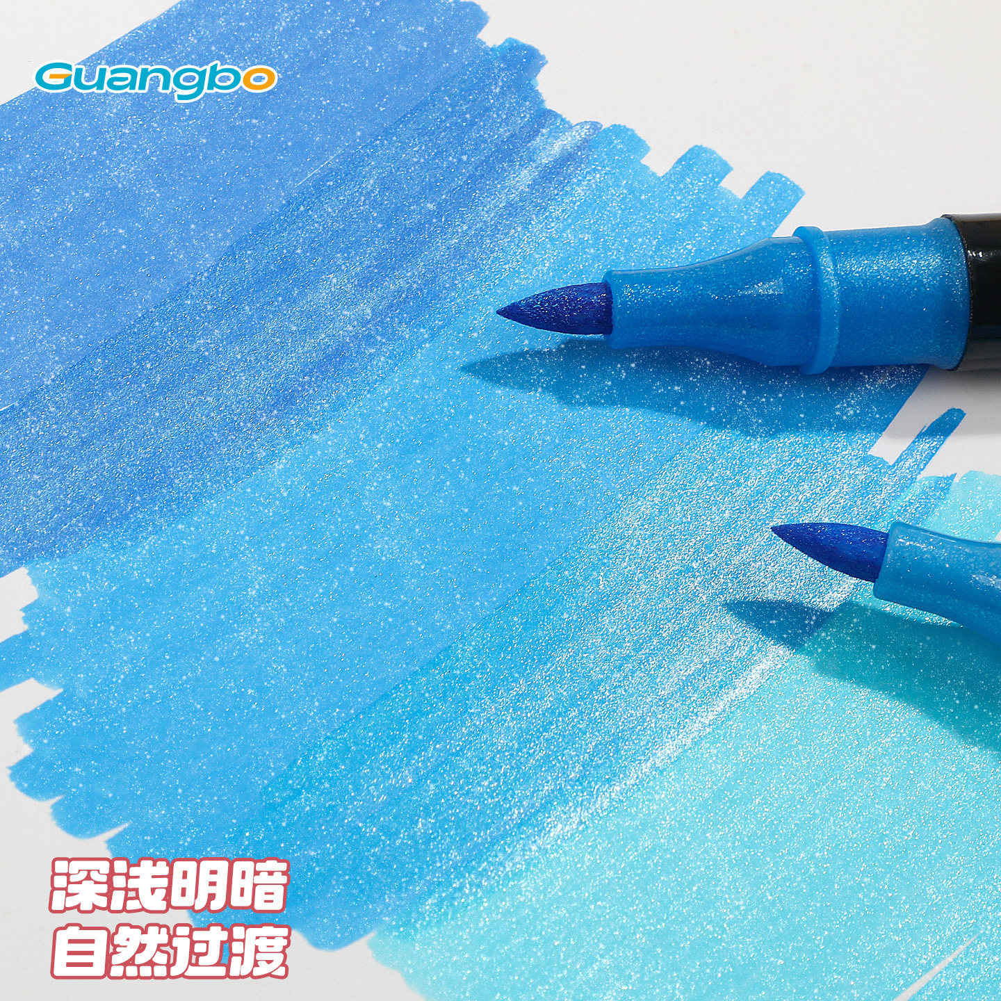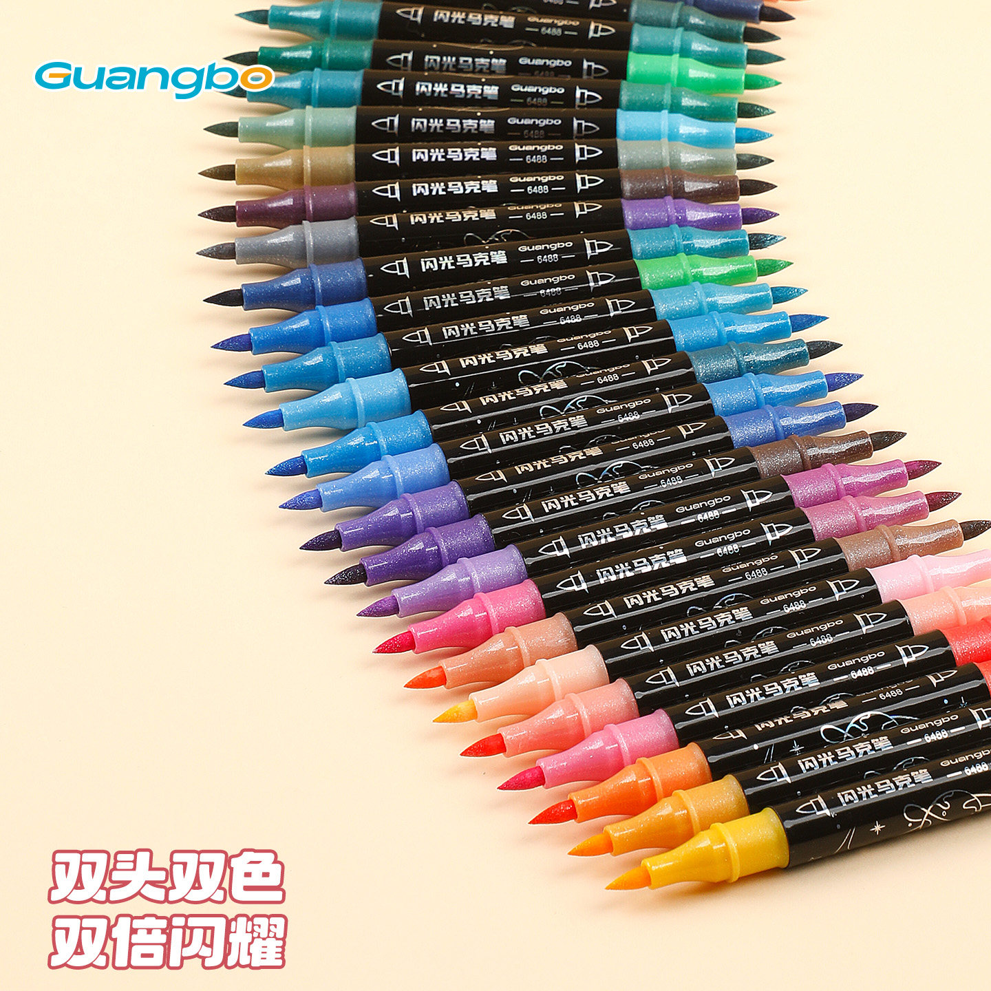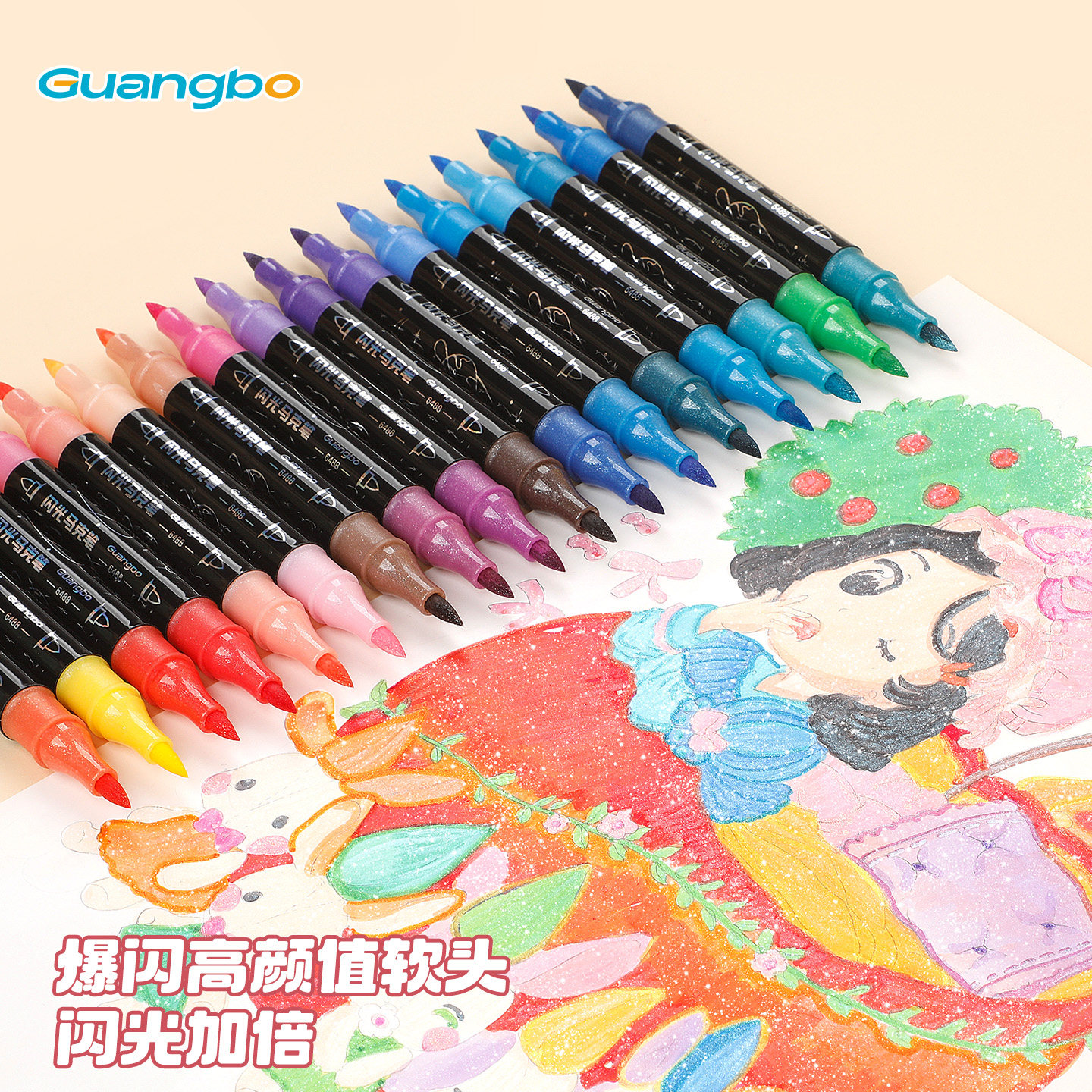 广博闪光马克笔软头双头带闪粉水彩笔荧光小学生儿童美术专用手账渐变珠光流光丙烯变色彩色毒爆闪彩绘画画笔
