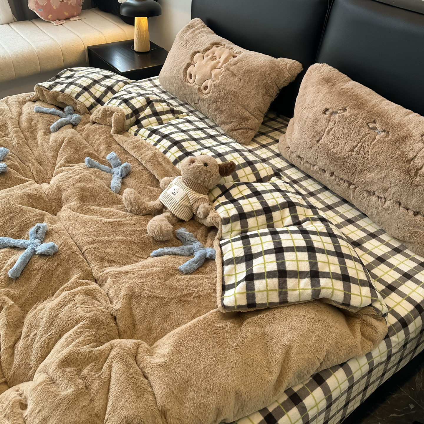 秋冬季加厚四件套牛奶绒被套床单双面加绒被罩床笠学生宿舍三件套