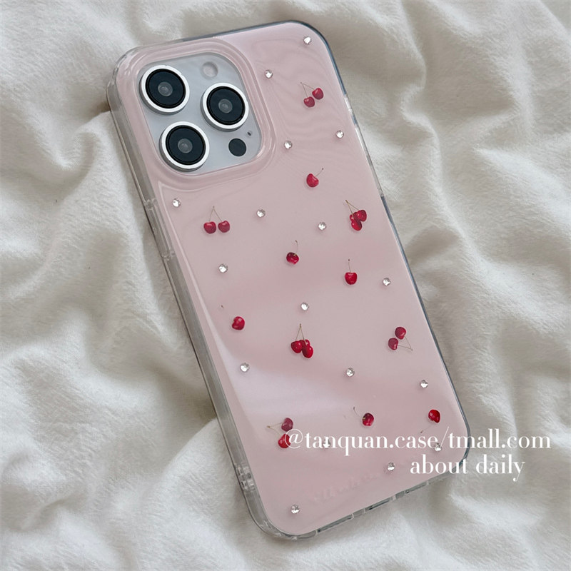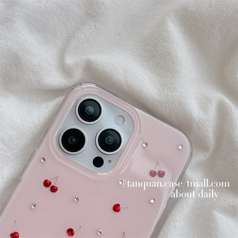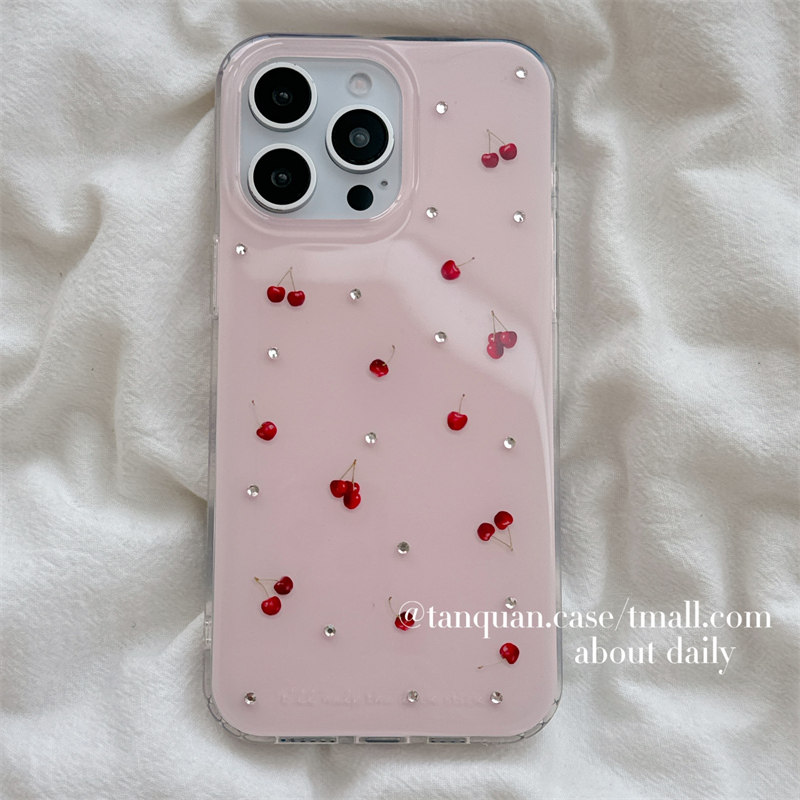 ins韩系少女贴钻粉色樱桃适用iphone16苹果17pro手机壳14promax新款13女款15甜美简约13pro双层壳14全包硬壳