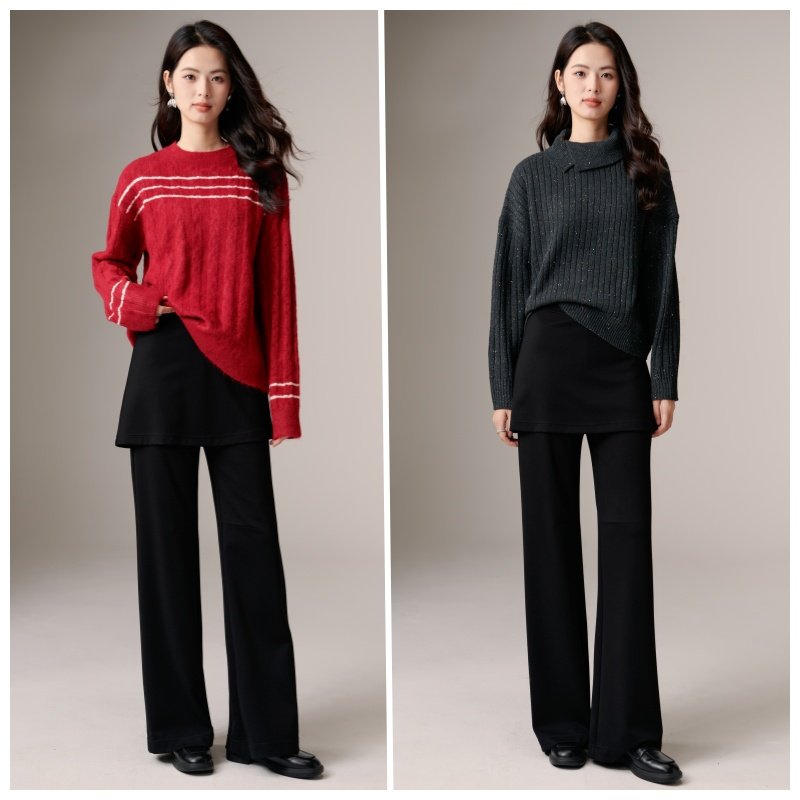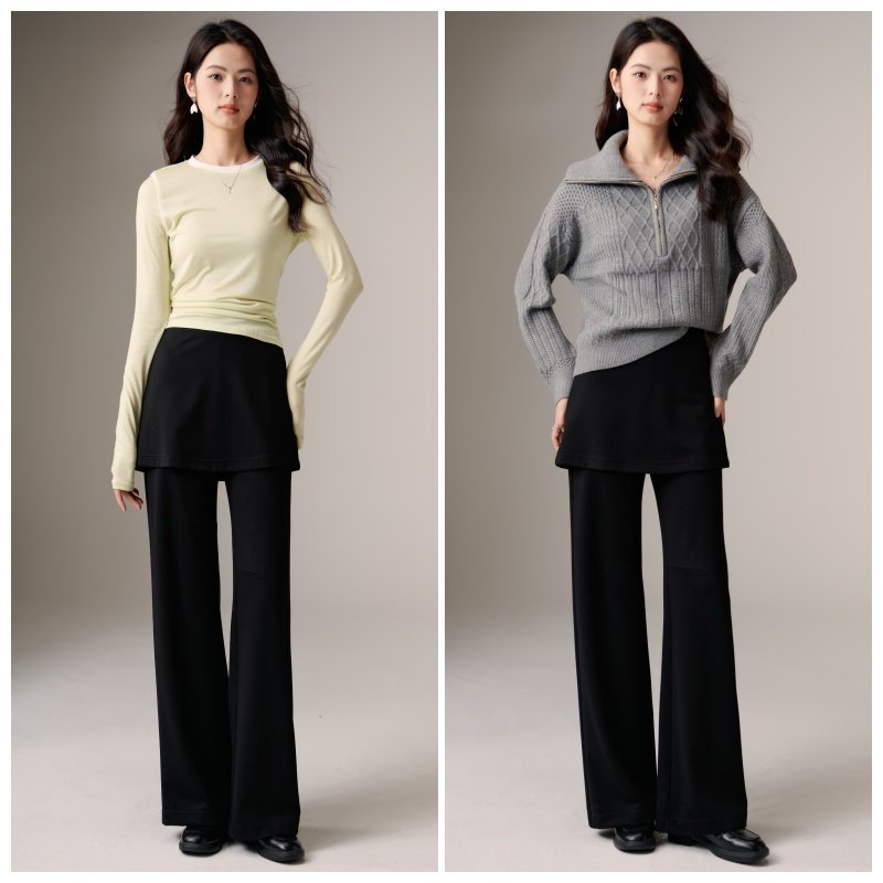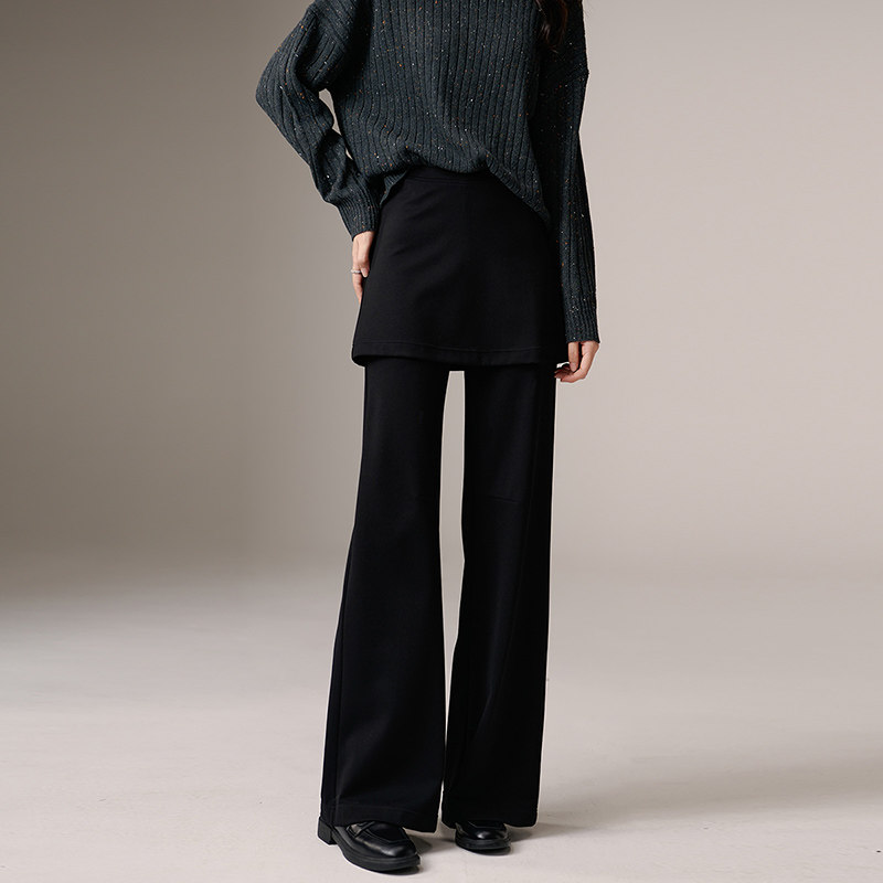 晚白2025年秋冬新款时尚假两件裙帘屁帘时髦简约高腰裙裤休闲裤女