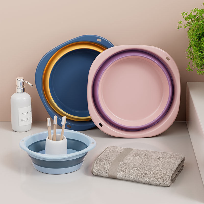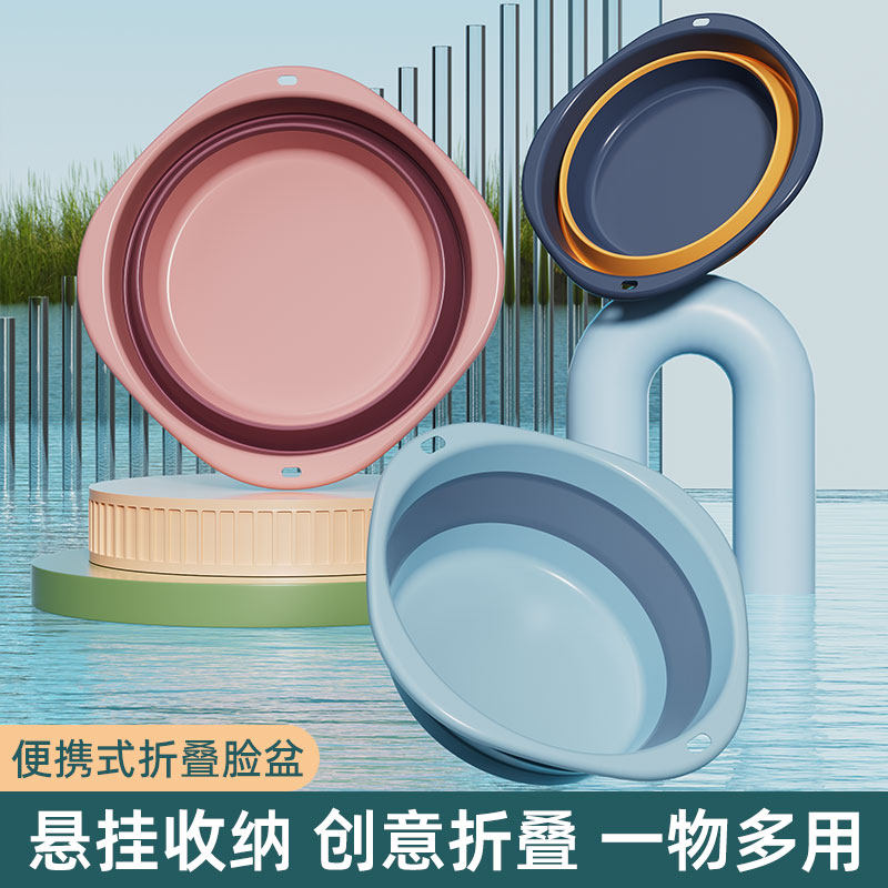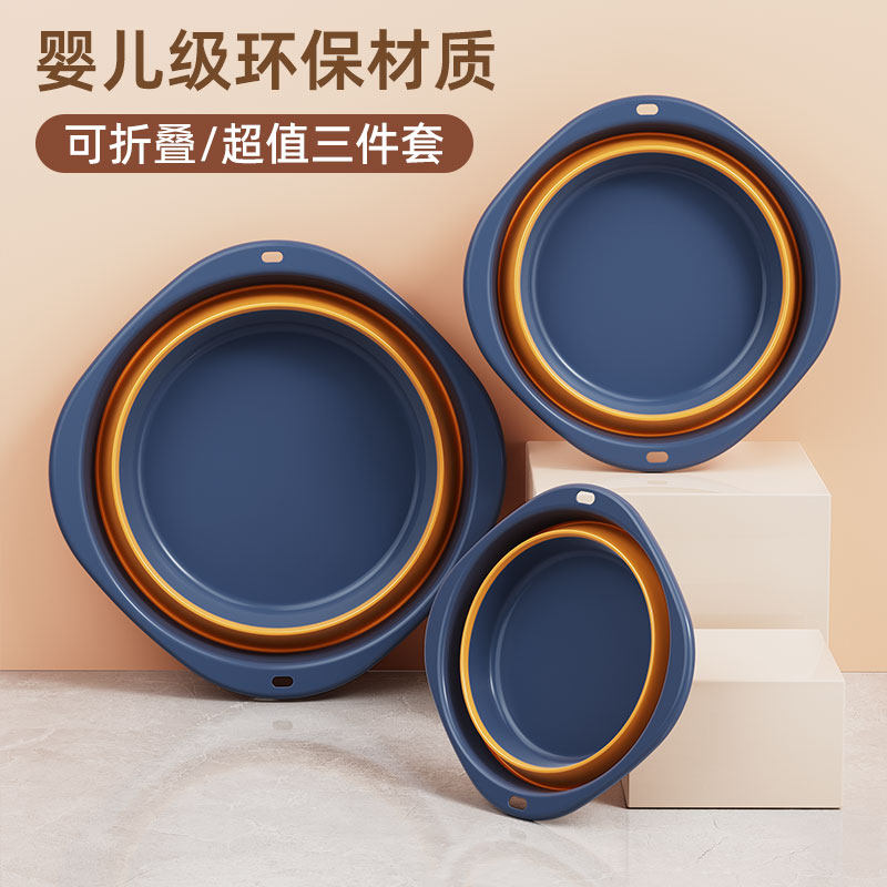 茱萸粉折叠脸盆3件套 超大号 大号 中号