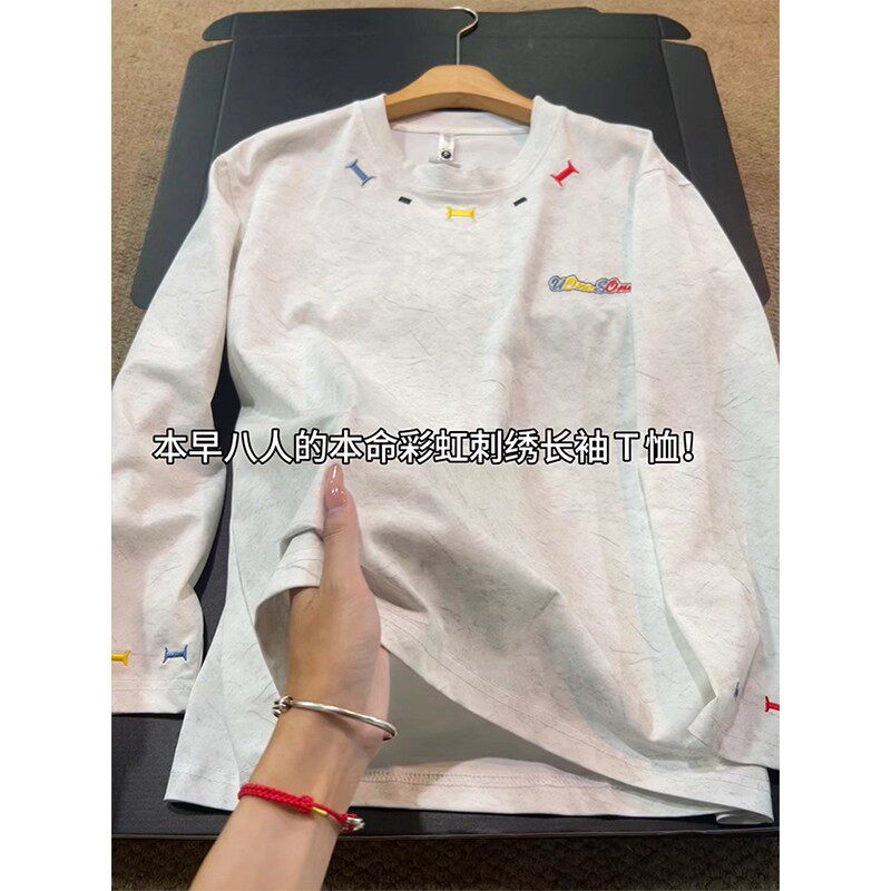 cleanfi刺绣圆领长袖t恤男秋季美式正肩潮牌打底卫衣上衣宽松型