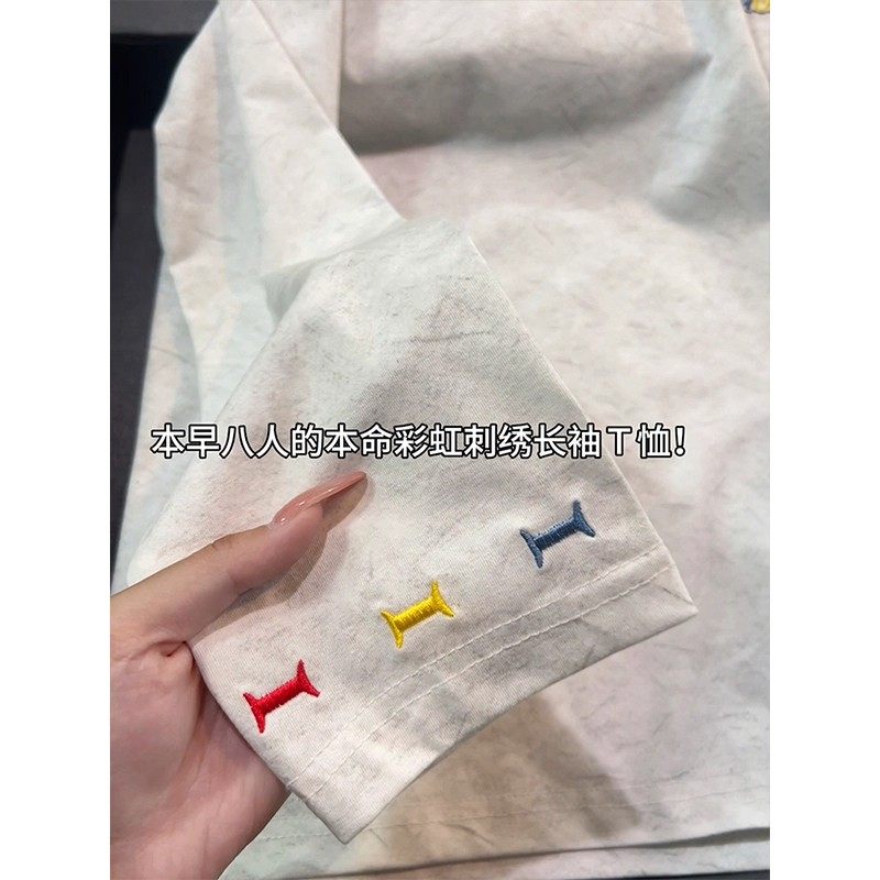 BURNIN*小火苗火焰横排长袖T恤男宽松美式街头加绒保暖打底衫上衣